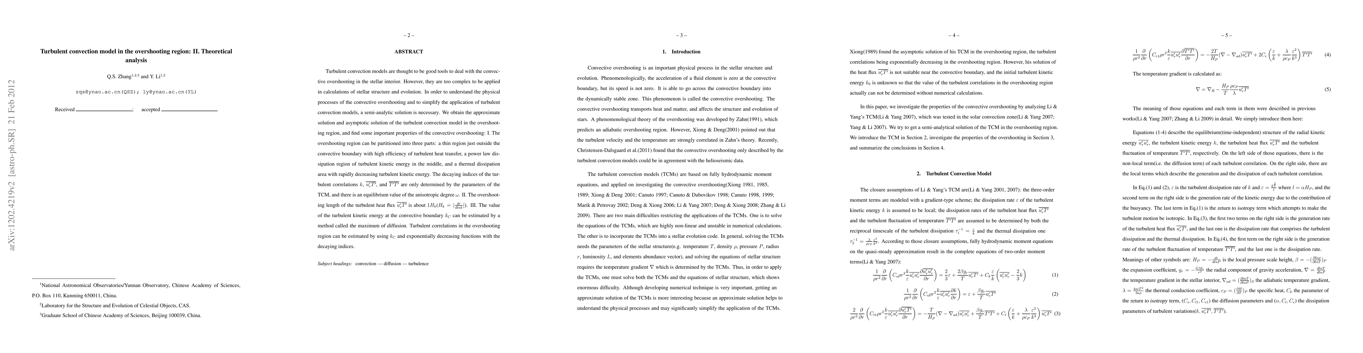 This paper presents a theoretical analysis of turbulent convection models to simplify their application in stellar structure and evolution calculations. The study derives approximate and asymptotic solutions, revealing three distinct regions in the overshooting region, and estimates the overshooting length and turbulent kinetic energy at the convective boundary.