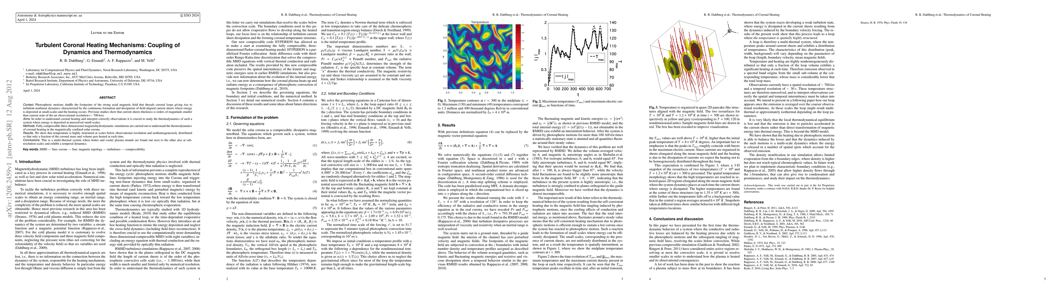 This paper investigates the turbulent heating mechanisms in the solar corona using magnetohydrodynamic simulations, revealing that temperature is highly structured and nonhomogeneously distributed at scales below current observational resolutions, leading to a multi-thermal system with both hot and cool plasma strands coexisting and dynamically evolving.
