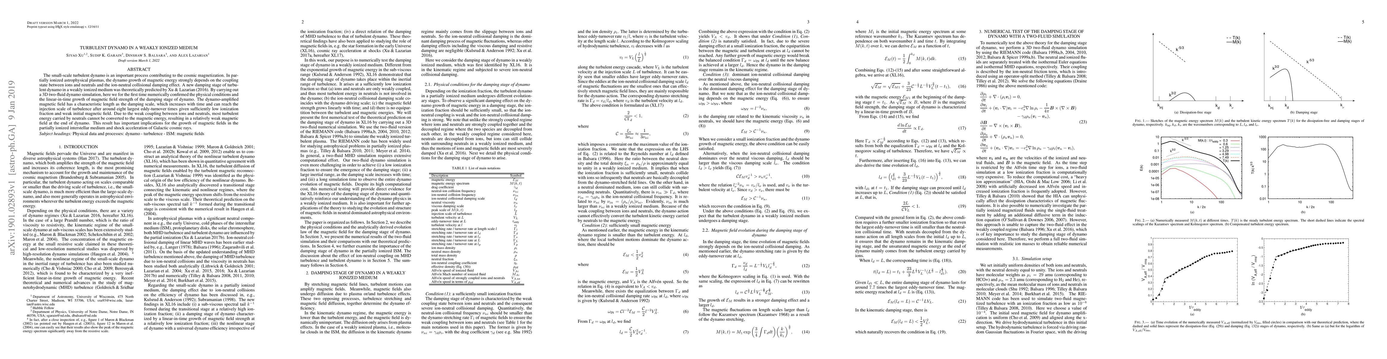 The study numerically confirmed the theoretical prediction of a new damping stage for turbulent dynamo in weakly ionized astrophysical plasmas, showing that the growth of magnetic fields is significantly reduced due to weak ion-neutral coupling and ion-neutral collisional damping, which has implications for interstellar magnetic field development and cosmic ray acceleration.