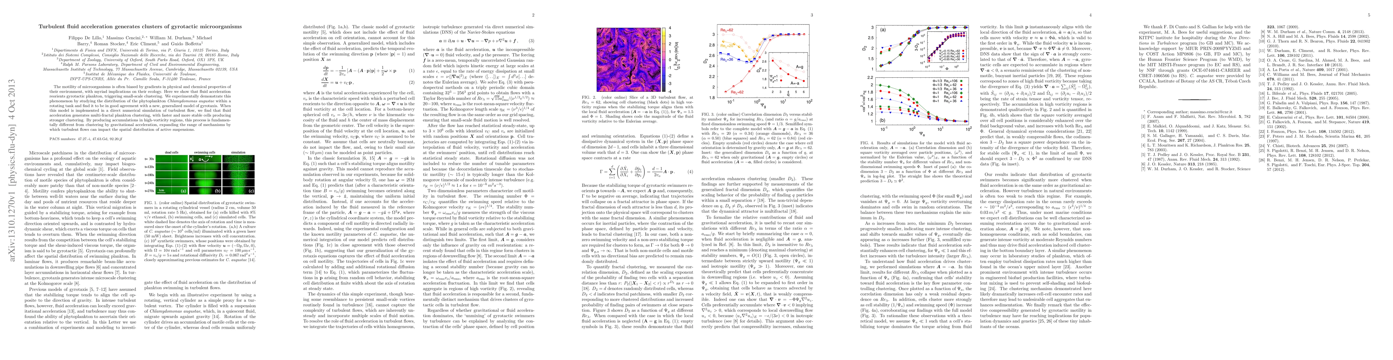 This study demonstrates that fluid acceleration in turbulent flows can reorient gyrotactic microorganisms, leading to small-scale clustering. Using Chlamydomonas augustae in a rotating tank, researchers found that fluid acceleration generates multi-fractal clustering patterns, differing fundamentally from gravitational clustering, and is more pronounced in faster and more stable cells.