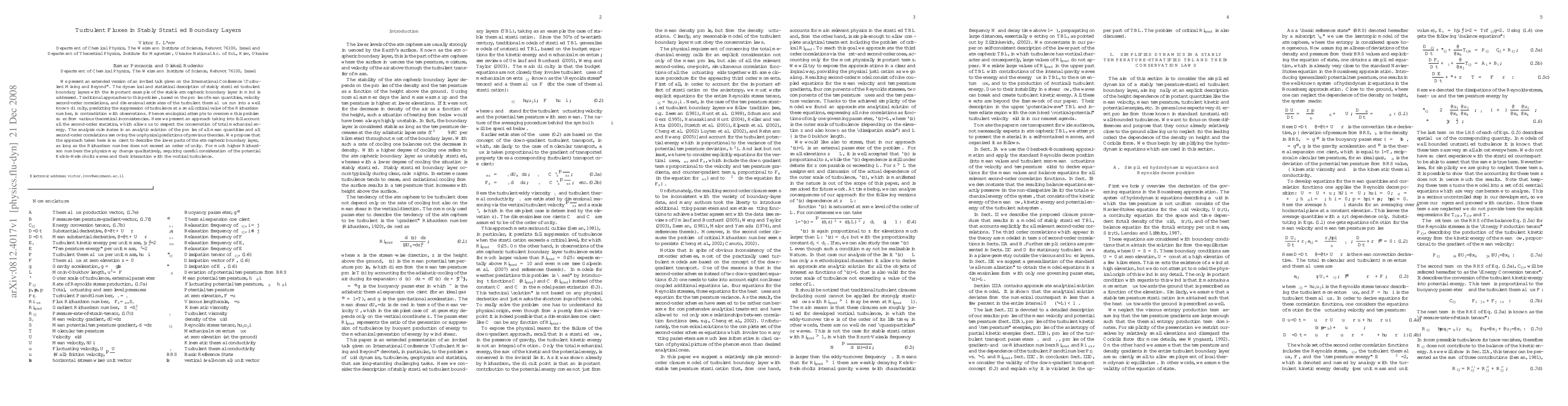 We present an extended version of an invited talk given on the International Conference "Turbulent Mixing and Beyond". The dynamical and statistical description of stably stratified turbulent boundary layers with the important example of the stable atmospheric boundary layer in mind is addressed. Traditional approaches to this problem, based on the profiles of mean quantities, velocity second-order correlations, and dimensional estimates of the turbulent thermal flux run into a well known difficulty, predicting the suppression of turbulence at a small critical value of the Richardson number, in contradiction with observations. Phenomenological attempts to overcome this problem suffer from various theoretical inconsistencies. Here we present an approach taking into full account all the second-order statistics, which allows us to respect the conservation of total mechanical energy. The analysis culminates in an analytic solution of the profiles of all mean quantities and all second-order correlations removing the unphysical predictions of previous theories. We propose that the approach taken here is sufficient to describe the lower parts of the atmospheric boundary layer, as long as the Richardson number does not exceed an order of unity. For much higher Richardson numbers the physics may change qualitatively, requiring careful consideration of the potential Kelvin-Helmoholtz waves and their interaction with the vortical turbulence.