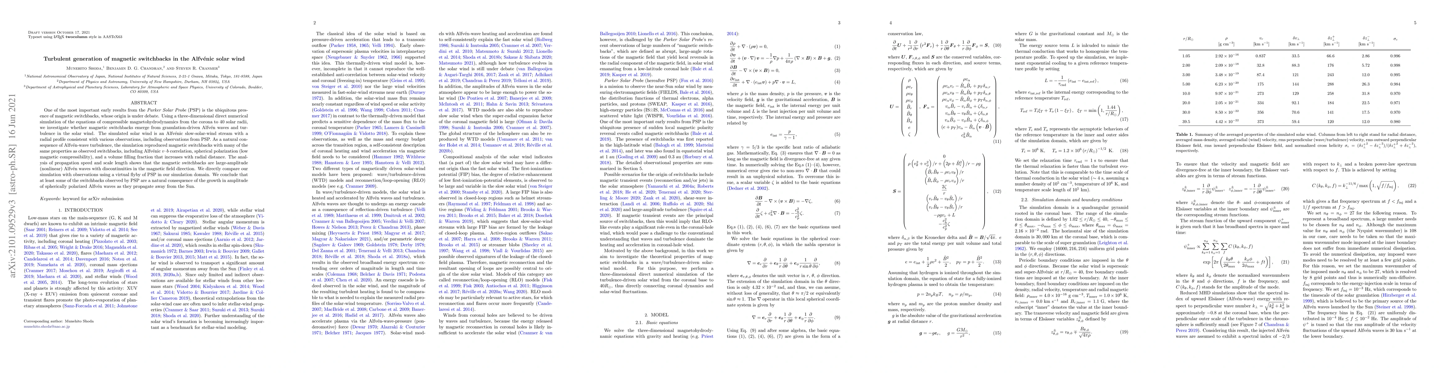 This study uses a three-dimensional magnetohydrodynamics simulation to show that magnetic switchbacks in the solar wind arise from the turbulence of Alfvén waves driven by solar granulation, reproducing observed properties such as Alfv\'enic correlations and increasing volume filling fraction with distance. The findings suggest that some switchbacks observed by Parker Solar Probe are amplified Alfvén waves.