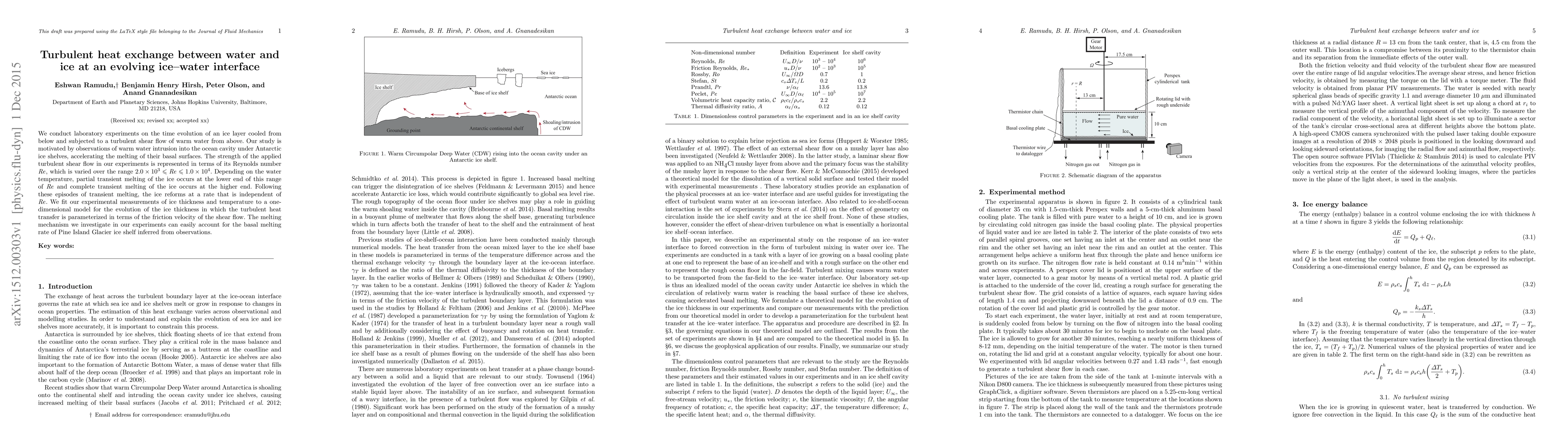 This study investigates turbulent heat exchange between warm water and ice under turbulent shear flow, simulating conditions beneath Antarctic ice shelves. The experiments reveal partial and complete melting of ice depending on the Reynolds number, followed by ice reformation independent of the flow strength.