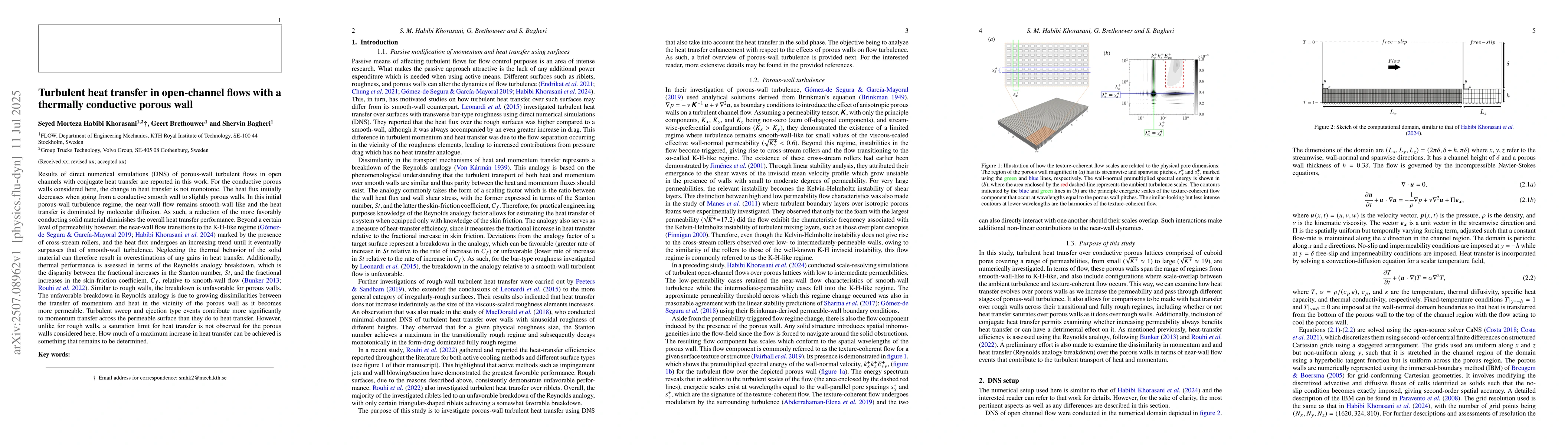 Results of direct numerical simulations (DNS) of porous-wall turbulent flows in open channels with conjugate heat transfer are reported in this work. For the conductive porous walls considered here, the change in heat transfer is not monotonic. The heat flux initially decreases when going from a conductive smooth wall to slightly porous walls. In this initial porous-wall turbulence regime, the near-wall flow remains smooth-wall like and the heat transfer is dominated by molecular diffusion. As such, a reduction of the more favorably conducting solid material diminishes the overall heat transfer performance. Beyond a certain level of permeability however, the near-wall flow transitions to the K-H-like regime marked by the presence of cross-stream rollers, and the heat flux undergoes an increasing trend until it eventually surpasses that of smooth-wall turbulence. Neglecting the thermal behavior of the solid material can therefore result in overestimation of any gains in heat transfer. Additionally, thermal performance is assessed in terms of the Reynolds analogy breakdown, which is the disparity between the fractional increases in the Stanton number, $St$, and the fractional increases in the skin-friction coefficient, $C_f$, relative to smooth-wall flow. Similar to rough walls, the breakdown is unfavorable for porous walls. The unfavorable breakdown in Reynolds analogy is due to growing dissimilarities between the transfer of momentum and heat in the vicinity of the porous wall as it becomes more permeable. Turbulent sweep and ejection type events contribute more significantly to momentum transfer across the permeable surface than they do to heat transfer. However, unlike for rough walls, a saturation limit for heat transfer is not observed for the porous walls considered here. How much of a maximum increase in heat transfer can be achieved is something that remains to be determined.