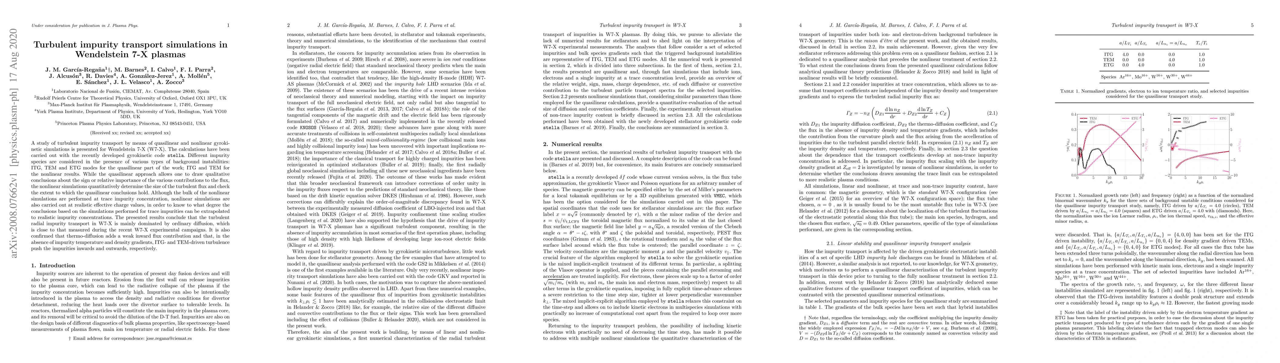 The research utilized quasilinear and nonlinear gyrokinetic simulations with the stella code for Wendelstein 7-X (W7-X) plasmas, analyzing turbulent impurity transport in the presence of ITG, TEM, and ETG instabilities.