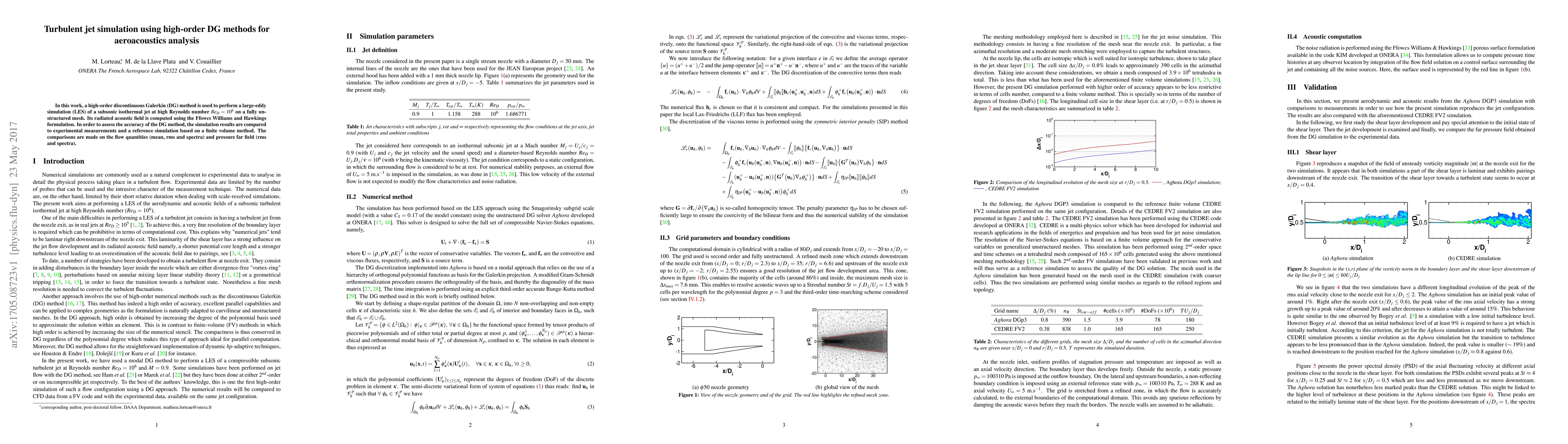 In this work, a high-order discontinuous Galerkin (DG) method is used to perform a large-eddy simulation (LES) of a subsonic isothermal jet at high Reynolds number Re D = 10^6 on a fully un-structured mesh. Its radiated acoustic field is computed using the Ffowcs Williams and Hawkings formulation. In order to assess the accuracy of the DG method, the simulation results are compared to experimental measurements and a reference simulation based on a finite volume method. The comparisons are made on the flow quantities (mean, rms and spectra) and pressure far field (rms and spectra).