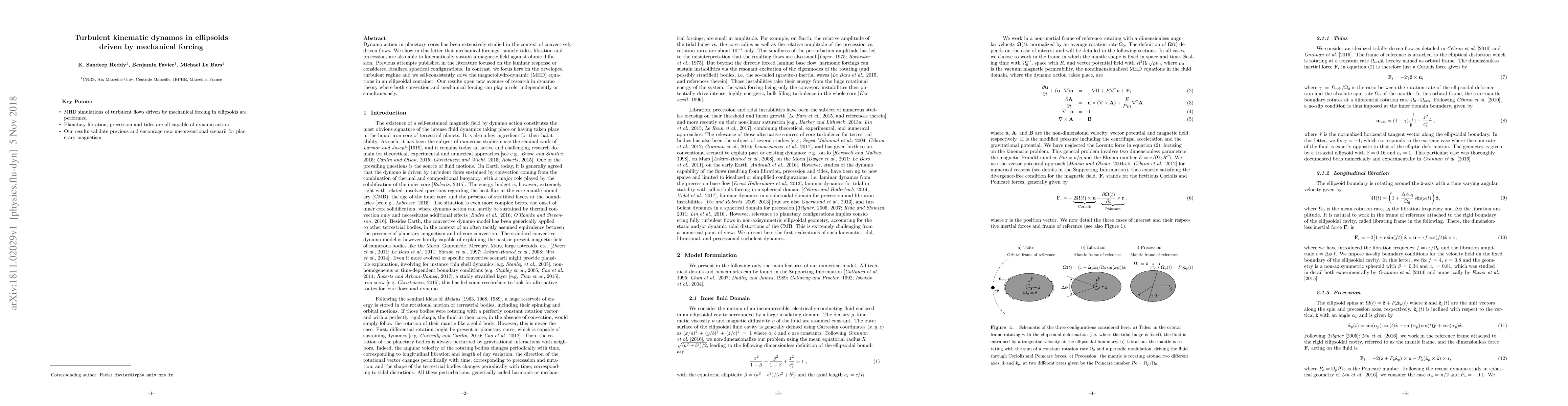 Dynamo action in planetary cores has been extensively studied in the context of convectively-driven flows. We show in this letter that mechanical forcings, namely tides, libration and precession, are also able to kinematically sustain a magnetic field against ohmic diffusion. Previous attempts published in the literature focused on the laminar response or considered idealized spherical configurations. In contrast, we focus here on the developed turbulent regime and we self-consistently solve the magnetohydrodynamic (MHD) equations in an ellipsoidal container. Our results open new avenues of research in dynamo theory where both convection and mechanical forcing can play a role, independently or simultaneously.