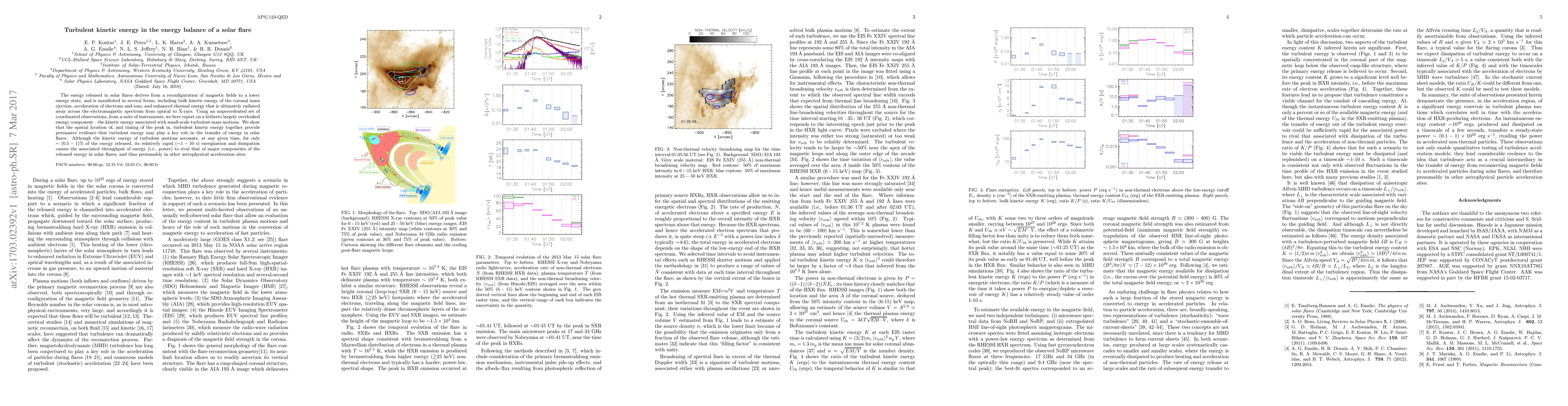 This paper investigates the kinetic energy from turbulent mass motions in solar flares, revealing that while it constitutes only a small fraction of the total energy, its rapid energization and dissipation make it a significant contributor to the energy transfer process. The findings suggest turbulent energy may play a crucial role in solar flare dynamics.