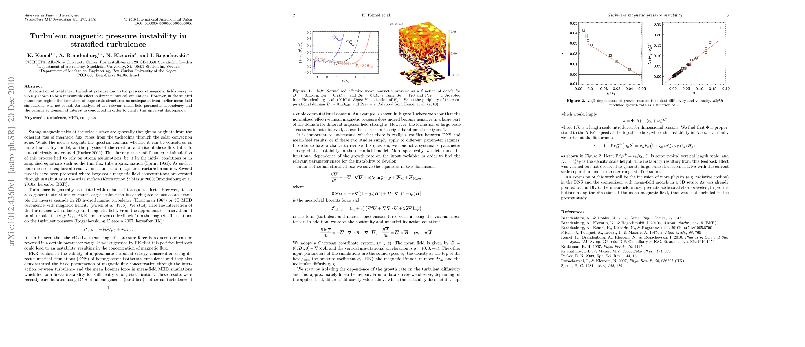 A reduction of total mean turbulent pressure due to the presence of magnetic fields was previously shown to be a measurable effect in direct numerical simulations. However, in the studied parameter regime the formation of large-scale structures, as anticipated from earlier mean-field simulations, was not found. An analysis of the relevant mean-field parameter dependency and the parameter domain of interest is conducted in order to clarify this apparent discrepancy.