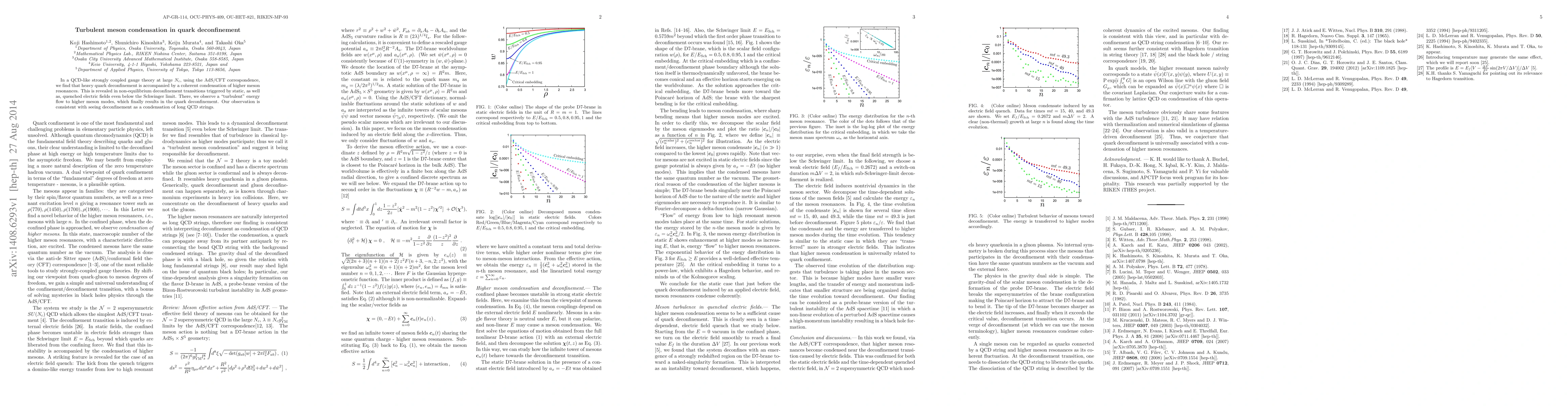In a QCD-like strongly coupled gauge theory at large N_c, using the AdS/CFT correspondence, we find that heavy quark deconfinement is accompanied by a coherent condensation of higher meson resonances. This is revealed in non-equilibrium deconfinement transitions triggered by static, as well as, quenched electric fields even below the Schwinger limit. There, we observe a "turbulent" energy flow to higher meson modes, which finally results in the quark deconfinement. Our observation is consistent with seeing deconfinement as a condensation of long QCD strings.