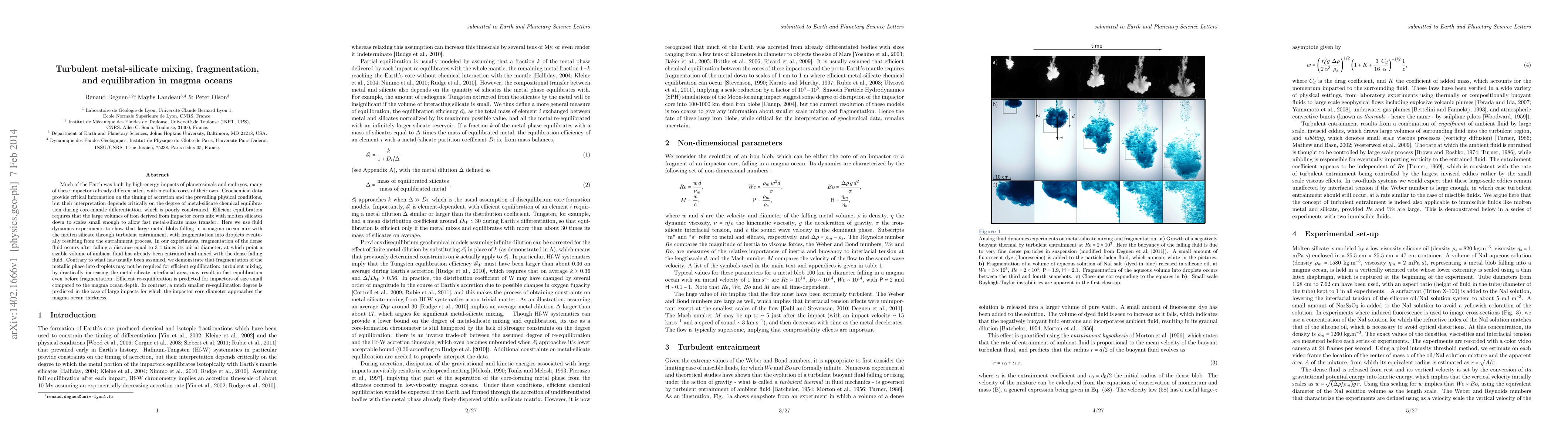 This research demonstrates that turbulent mixing in magma oceans can efficiently equilibrate metal-silicate compositions without requiring fragmentation into droplets, facilitated by turbulent entrainment. The study highlights that small impactors promote rapid equilibration, while large impacts may result in less efficient re-equilibration due to the proximity of the impactor core to the magma ocean's depth.