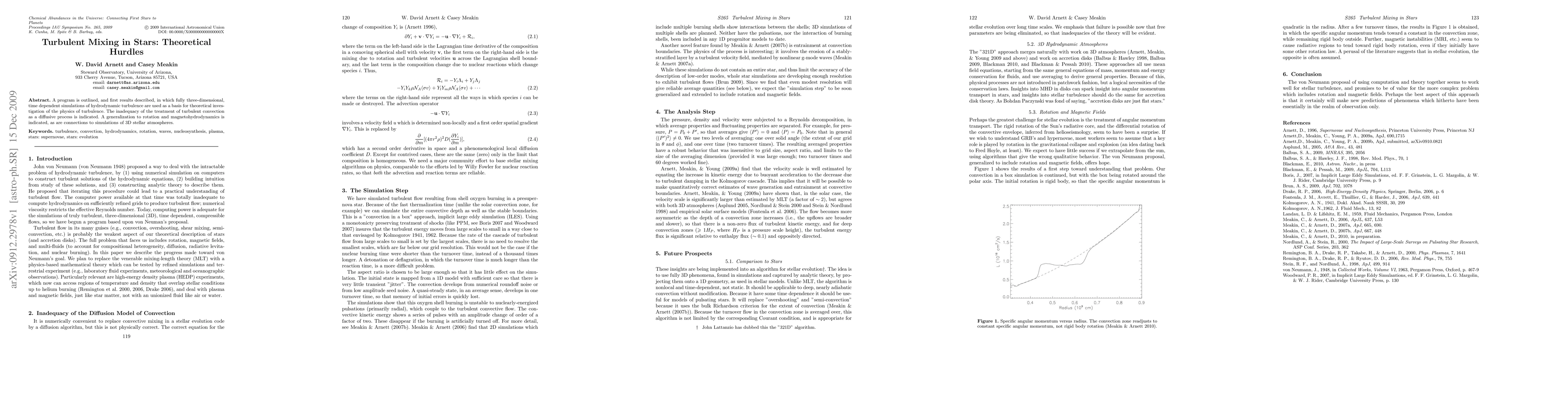A program is outlined, and first results described, in which fully three-dimensional, time dependent simulations of hydrodynamic turbulence are used as a basis for theoretical investigation of the physics of turbulence in stars. The inadequacy of the treatment of turbulent convection as a diffusive process is discussed. A generalization to rotation and magnetohydrodynamics is indicated, as are connection to simulations of 3D stellar atmospheres.