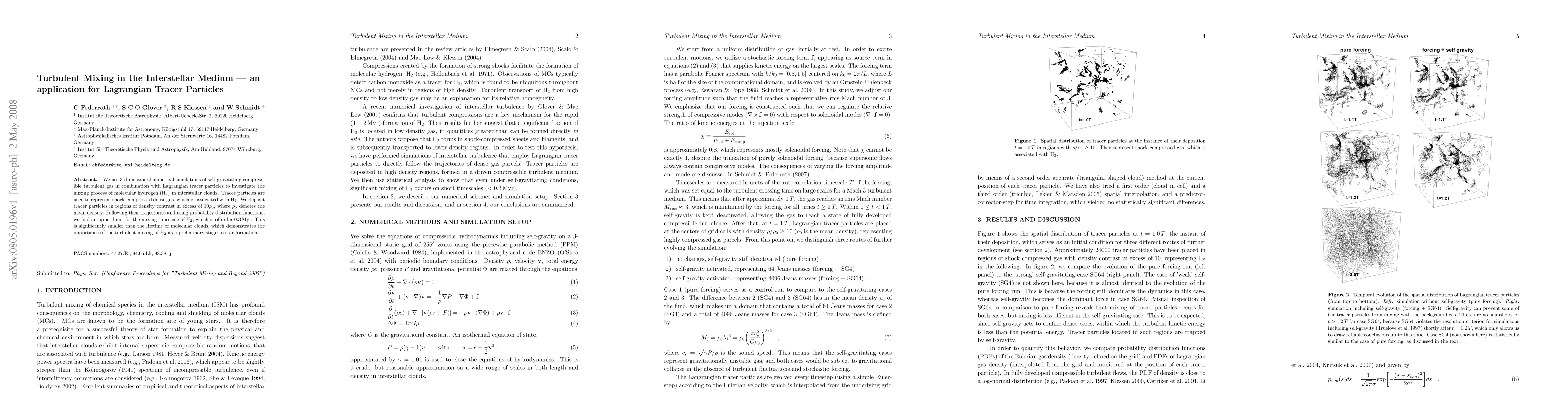 This paper employs 3-dimensional numerical simulations and Lagrangian tracer particles to study the mixing of molecular hydrogen in interstellar clouds. Finding an upper limit of 0.3 Myr for the H2 mixing timescale, the study highlights the critical role of turbulent mixing in preparing molecular clouds for star formation.