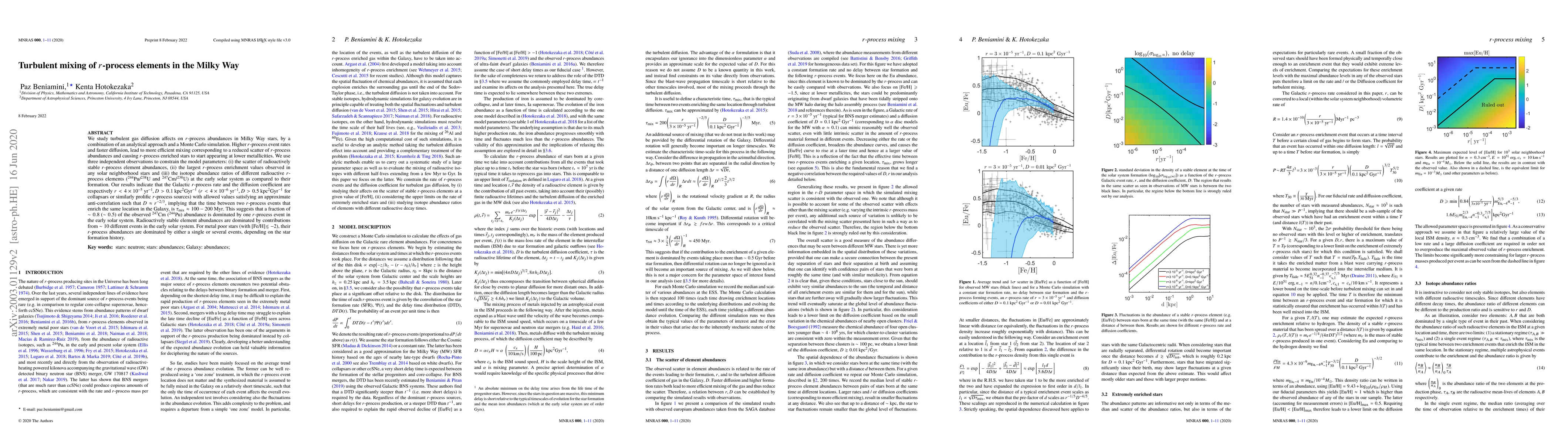 We study turbulent gas diffusion affects on $r$-process abundances in Milky Way stars, by a combination of an analytical approach and a Monte Carlo simulation. Higher $r$-process event rates and faster diffusion, lead to more efficient mixing corresponding to a reduced scatter of $r$-process abundances and causing $r$-process enriched stars to start appearing at lower metallicities. We use three independent observations to constrain the model parameters: (i) the scatter of radioactively stable $r$-process element abundances, (ii) the largest $r$-process enrichment values observed in any solar neighborhood stars and (iii) the isotope abundance ratios of different radioactive $r$-process elements ($^{244}$Pu/$^{238}$U and $^{247}$Cm/$^{238}$U) at the early solar system as compared to their formation. Our results indicate that the Galactic $r$-process rate and the diffusion coefficient are respectively $r<4\times 10^{-5}\mbox{ yr}^{-1}, D>0.1 \mbox{ kpc}^2\mbox{Gyr}^{-1}$ ($r<4\times 10^{-6}\mbox{ yr}^{-1}, D>0.5 \mbox{ kpc}^2\mbox{Gyr}^{-1}$ for collapsars or similarly prolific $r$-process sources) with allowed values satisfying an approximate anti-correlation such that $D\approx r^{-2/3}$, implying that the time between two $r$-process events that enrich the same location in the Galaxy, is $\tau_{\rm mix}\approx 100-200\mbox{ Myr}$. This suggests that a fraction of $\sim 0.8$ ($\sim 0.5$) of the observed $^{247}$Cm ($^{244}$Pu) abundance is dominated by one $r$-process event in the early solar system. Radioactively stable element abundances are dominated by contributions from $\sim 10$ different events in the early solar system. For metal poor stars (with [Fe/H]$\lesssim -2$), their $r$-process abundances are dominated by either a single or several events, depending on the star formation history.