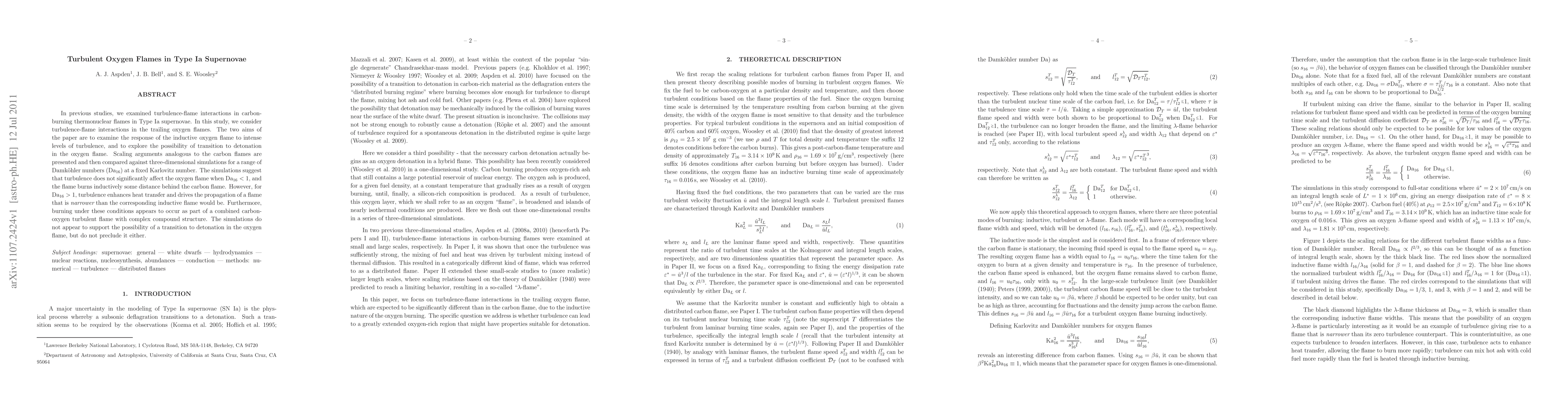 This paper investigates turbulence-flame interactions in Type Ia supernovae's trailing oxygen flames, finding that intense turbulence does not significantly affect the flame when the Damk\"ohler number is below 1, but enhances heat transfer and induces a narrower flame when it exceeds 1. The study does not support a transition to detonation in the oxygen flame.