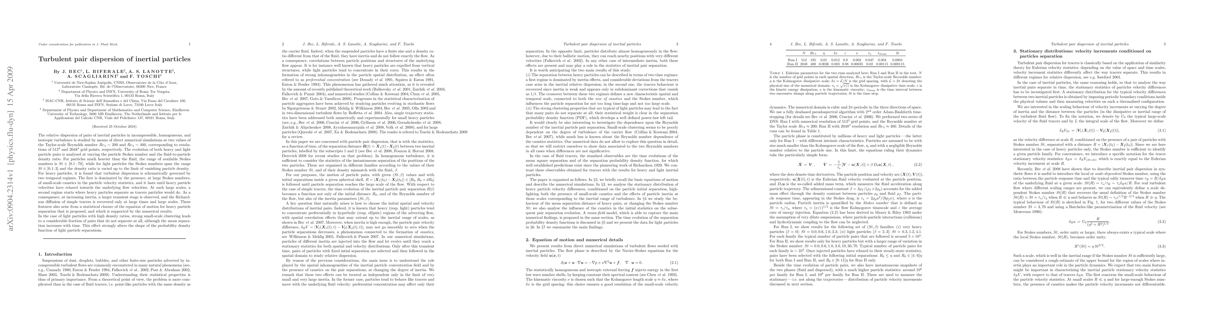 The paper presents a detailed analysis of inertial particle pair dispersion in turbulence, proposing a statistical closure model for heavy particle separation and identifying distinct dispersion regimes for both heavy and light particles.