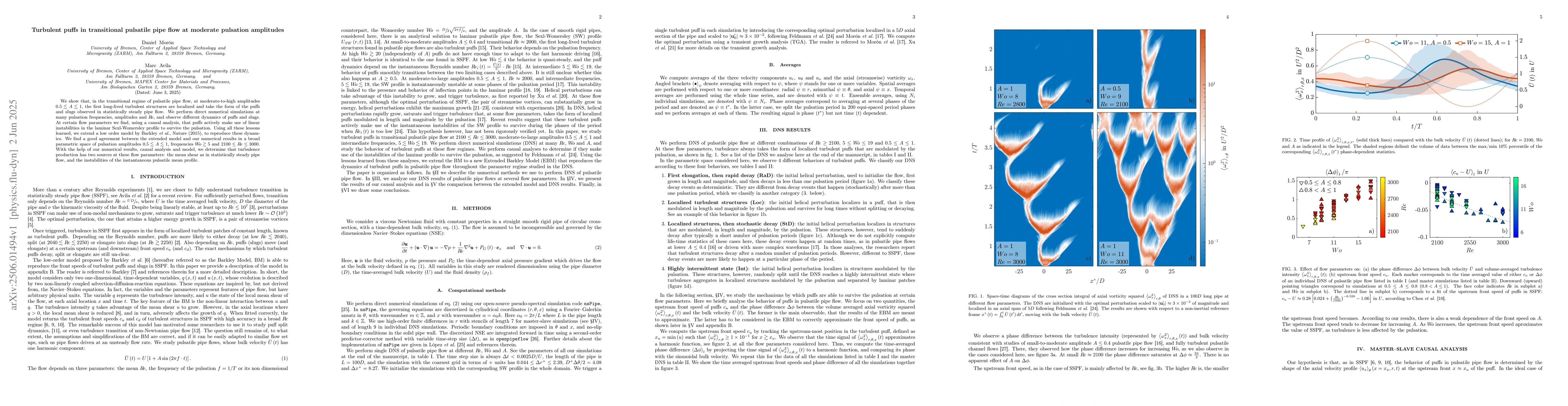 Direct numerical simulations at various pulsation frequencies, amplitudes, and Reynolds numbers (Re), along with causal analysis and extension of a low-order model by Barkley et al. (Nature, 2015).