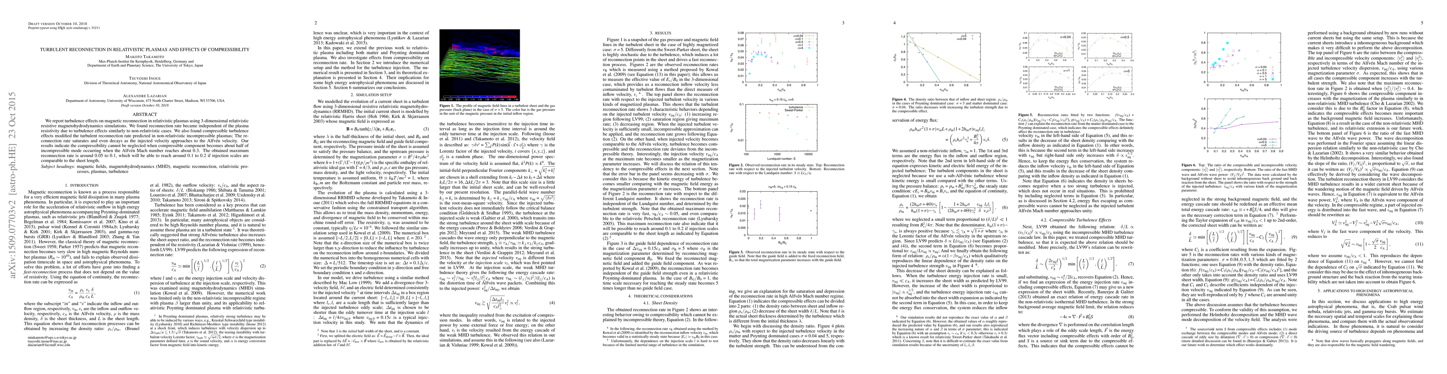 This paper explores turbulence's impact on magnetic reconnection in relativistic plasmas through 3D simulations, revealing that turbulence makes the reconnection rate independent of plasma resistivity. It also highlights that compressible turbulence modifies reconnection rates, leading to saturation and decay as Alfv\'en velocity approaches, emphasizing the importance of compressibility when the Alfv\'en Mach number is around $0.3$.