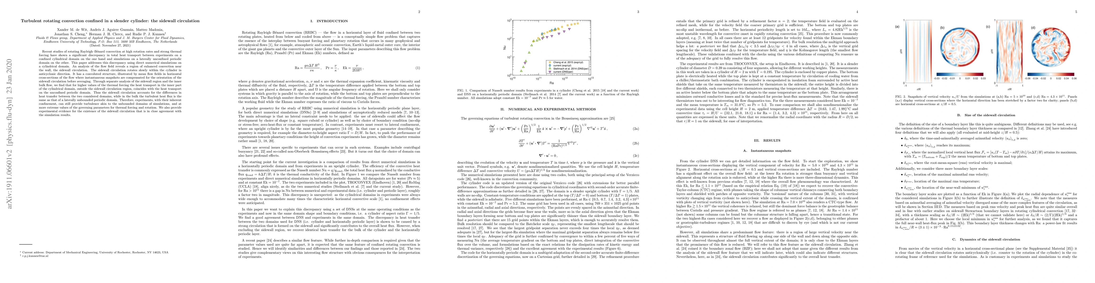 Recent studies of rotating Rayleigh-B\'enard convection at high rotation rates and strong thermal forcing have shown a significant discrepancy in total heat transport between experiments on a confined cylindrical domain on the one hand and simulations on a laterally unconfined periodic domain on the other. This paper addresses this discrepancy using direct numerical simulations on a cylindrical domain. An analysis of the flow field reveals a region of enhanced convection near the wall, the sidewall circulation. The sidewall circulation rotates slowly within the cylinder in anticyclonic direction. It has a convoluted structure, illustrated by mean flow fields in horizontal cross-sections of the flow where instantaneous snapshots are compensated for the orientation of the sidewall circulation before averaging. Through separate analysis of the sidewall region and the inner bulk flow, we find that for higher values of the thermal forcing the heat transport in the inner part of the cylindrical domain, outside the sidewall circulation region, coincides with the heat transport on the unconfined periodic domain. Thus the sidewall circulation accounts for the differences in heat transfer between the two considered domains, while in the bulk the turbulent heat flux is the same as that of a laterally unbounded periodic domain. Therefore, experiments, with their inherent confinement, can still provide turbulence akin to the unbounded domains of simulations, and at more extreme values of the governing parameters for thermal forcing and rotation. We also provide experimental evidence for the existence of the sidewall circulation that is in close agreement with the simulation results.