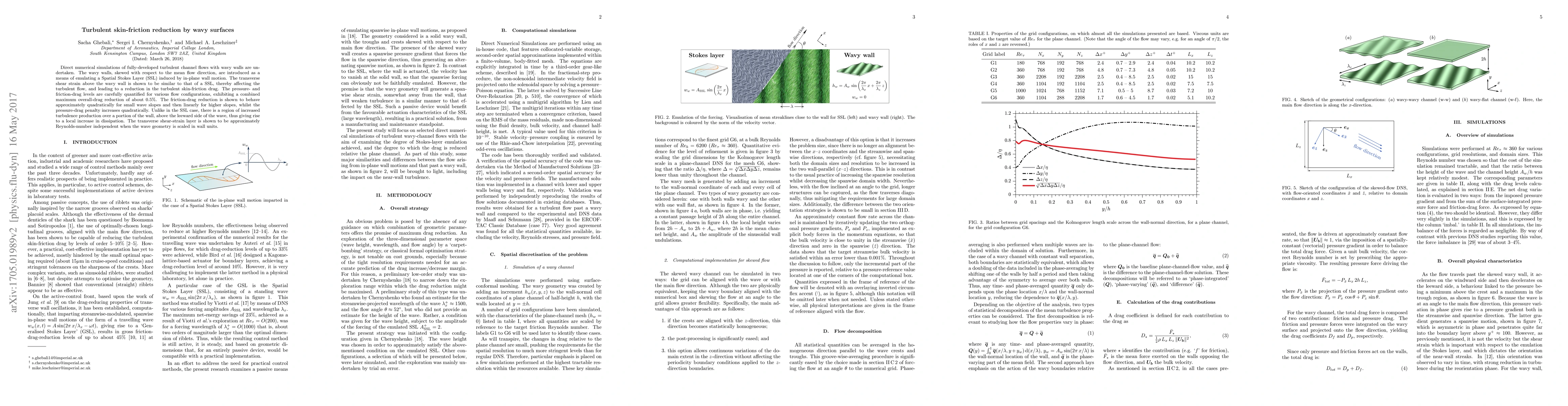Researchers found that wavy surfaces on walls can reduce turbulent skin-friction drag in fluid flows, with a maximum overall-drag reduction of about 0.5%. The effect is due to the creation of a transverse shear strain layer similar to a Spatial Stokes Layer.