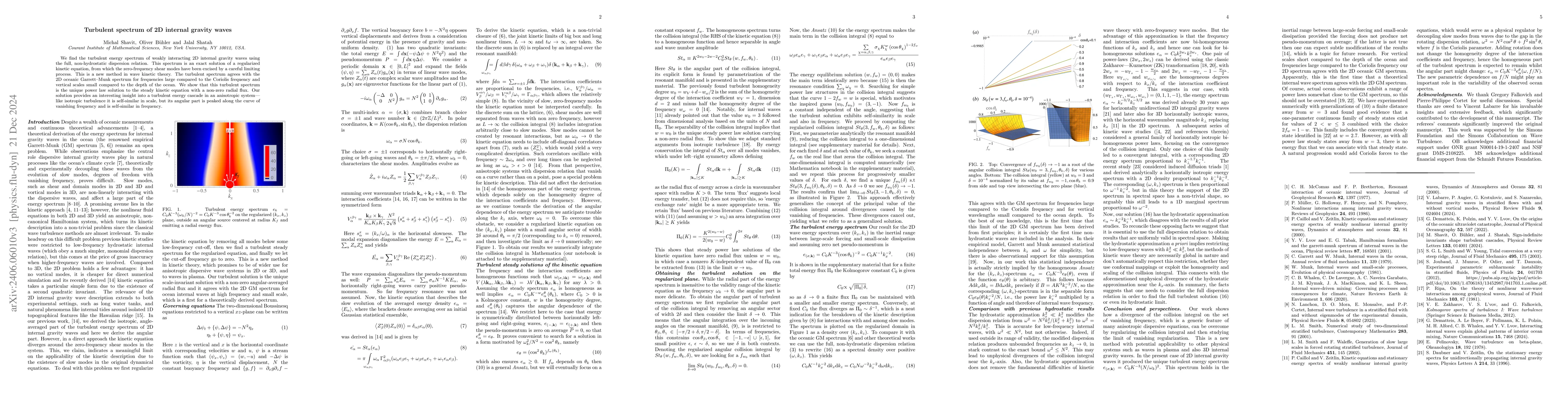 The paper presents an exact solution for the turbulent energy spectrum of 2D inertial gravity waves, revealing self-similar scaling in energy cascade while showing anisotropic behavior with angular flux along vanishing frequency curves. The solution aligns with oceanic observations described by the Garrett-Munk spectrum.