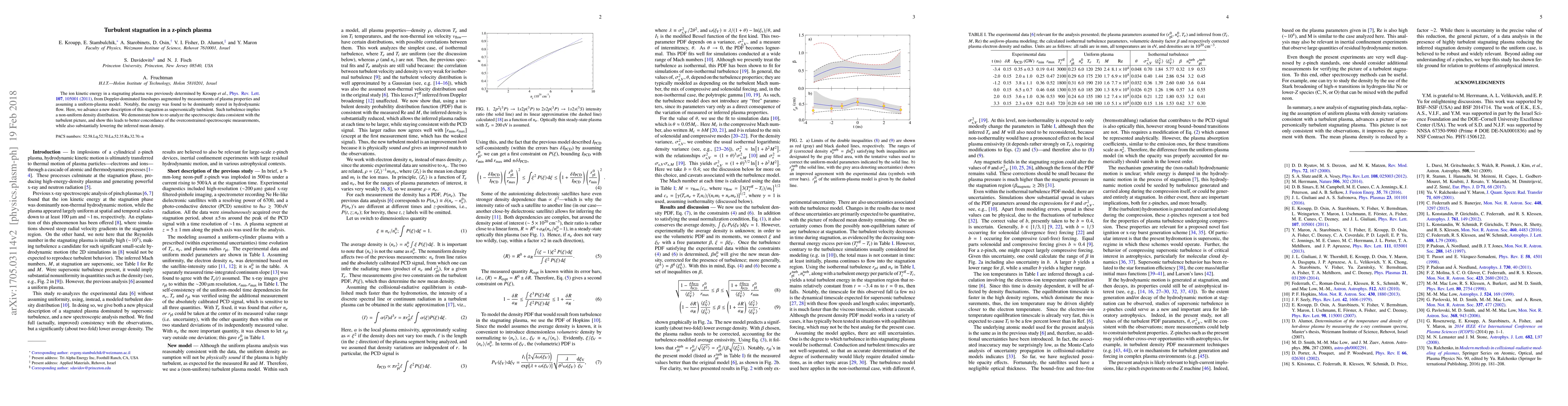 The ion kinetic energy in a stagnating plasma was previously determined by Kroupp et al. (Kroupp et al., 2011), from Doppler-dominated lineshapes augmented by measurements of plasma properties and assuming a uniform-plasma model. Notably, the energy was found to be dominantly stored in hydrodynamic flow. Here, we advance a new description of this stagnation as supersonically turbulent. Such turbulence implies a non-uniform density distribution. We demonstrate how to re-analyze the spectroscopic data consistent with the turbulent picture, and show this leads to better concordance of the overconstrained spectroscopic measurements, while also substantially lowering the inferred mean density.
