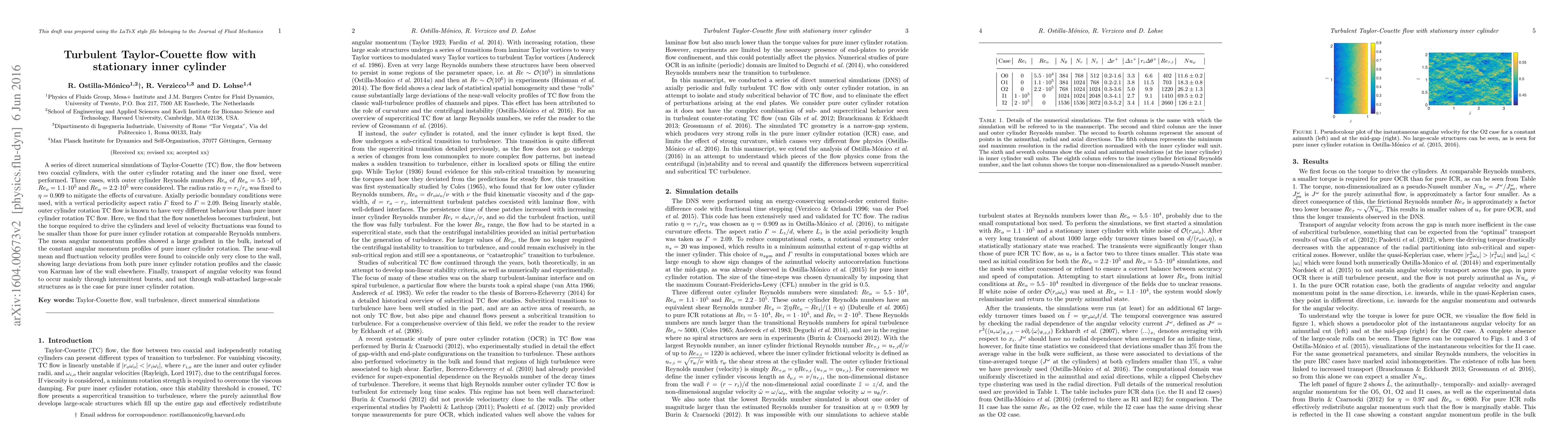 This study investigates turbulent Taylor-Couette flow with a rotating outer cylinder and a stationary inner cylinder, revealing that the flow becomes turbulent with lower torque and velocity fluctuations compared to pure inner cylinder rotation. The mean angular momentum profiles show significant gradients, and transport of angular velocity occurs primarily through intermittent bursts rather than large-scale structures.