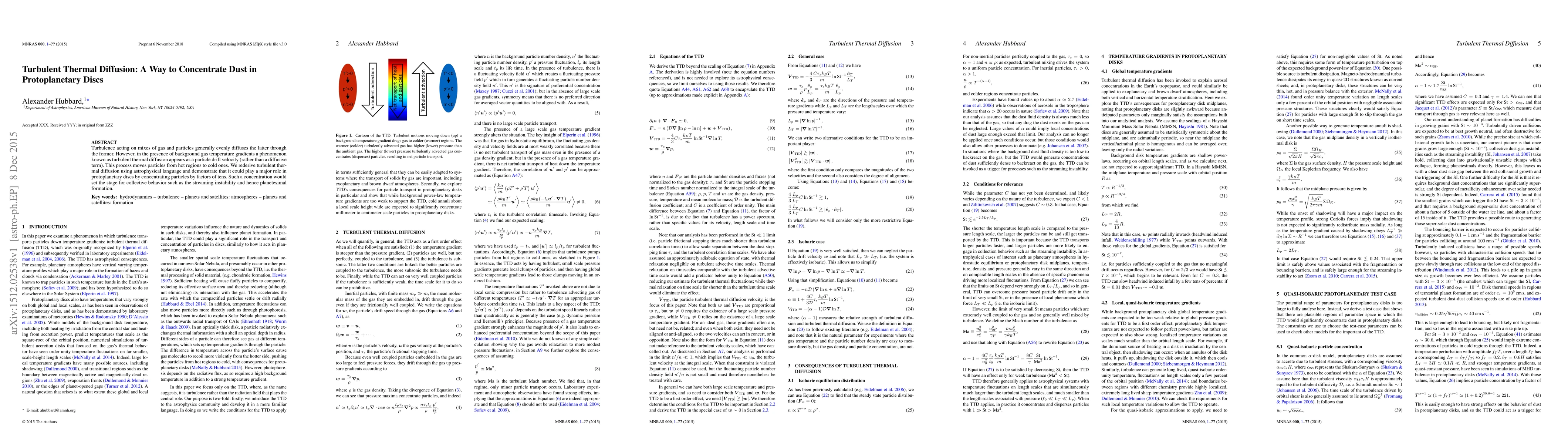 This paper explores turbulent thermal diffusion, a process that moves particles from hot to cold regions in protoplanetary discs, potentially concentrating dust by factors of tens and facilitating planetesimal formation through collective behaviors like the streaming instability.