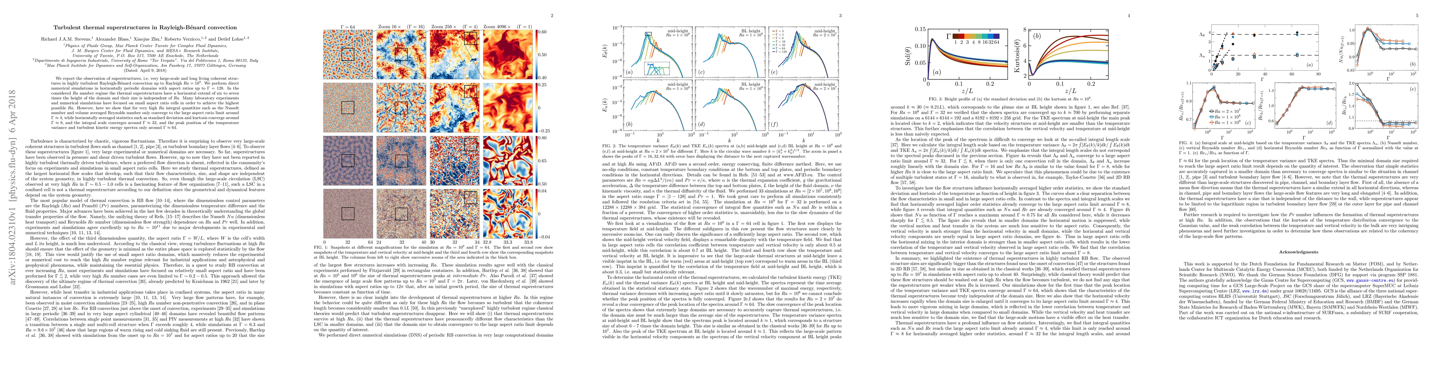 We report the observation of superstructures, i.e.\ very large-scale and long living coherent structures in highly turbulent Rayleigh-B\'enard convection up to Rayleigh $Ra=10^9$. We perform direct numerical simulations in horizontally periodic domains with aspect ratios up to $\Gamma=128$. In the considered $Ra$ number regime the thermal superstructures have a horizontal extend of six to seven times the height of the domain and their size is independent of $Ra$. Many laboratory experiments and numerical simulations have focused on small aspect ratio cells in order to achieve the highest possible $Ra$. However, here we show that for very high $Ra$ integral quantities such as the Nusselt number and volume averaged Reynolds number only converge to the large aspect ratio limit around $\Gamma \approx 4$, while horizontally averaged statistics such as standard deviation and kurtosis converge around $\Gamma \approx 8$, and the integral scale converges around $\Gamma \approx 32$, and the peak position of the temperature variance and turbulent kinetic energy spectra only around $\Gamma \approx 64$.