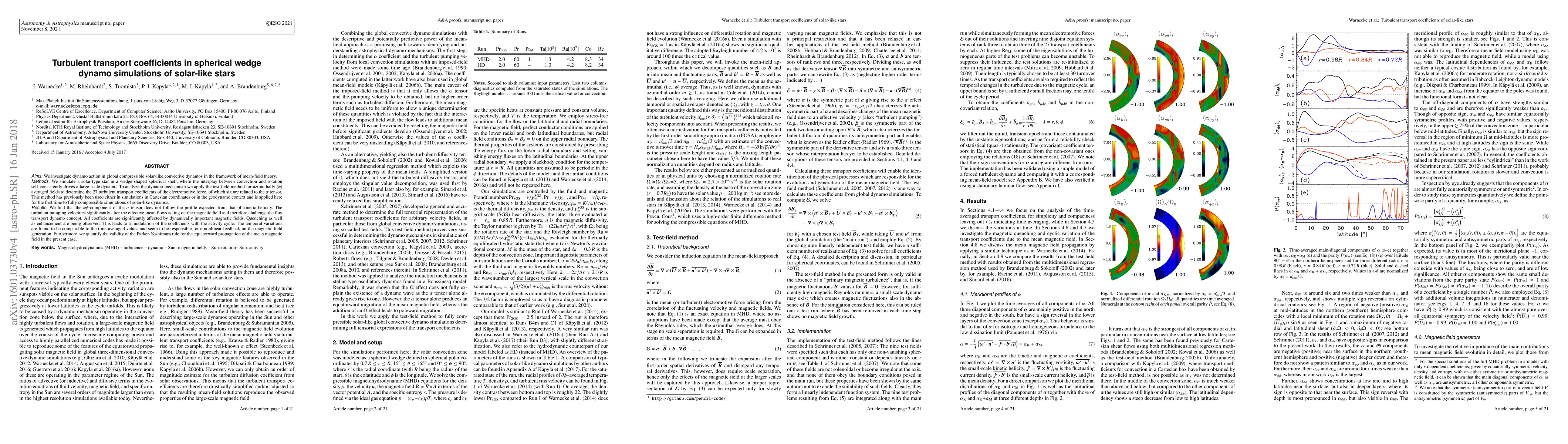 This paper investigates dynamo action in spherical wedge simulations of solar-like stars, applying the test-field method to determine 27 turbulent transport coefficients. It finds that the $\phi\phi$-component of the $\alpha$ tensor deviates from expected profiles, indicating significant alterations in effective mean flows and challenging the flux transport dynamo concept.