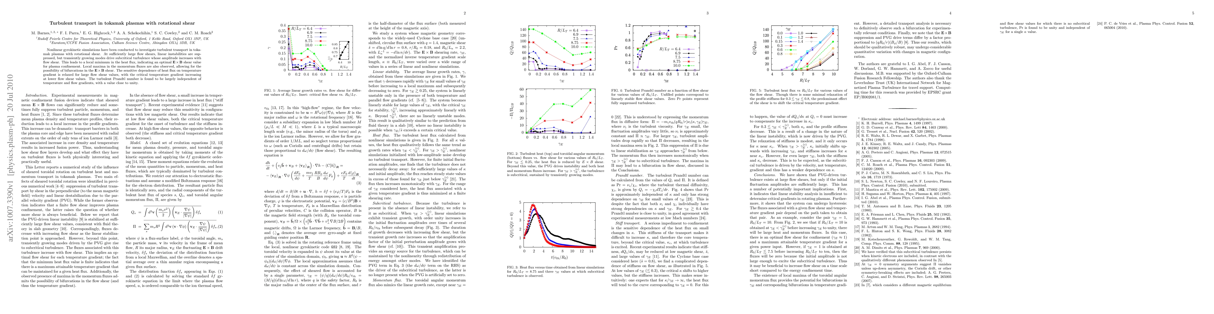 Nonlinear gyrokinetic simulations reveal that turbulent transport in tokamak plasmas with rotational shear is suppressed by large flow shears, leading to an optimal E x B shear for confinement and a local minimum in heat flux. The turbulent Prandtl number remains close to unity, independent of temperature and flow gradients.
