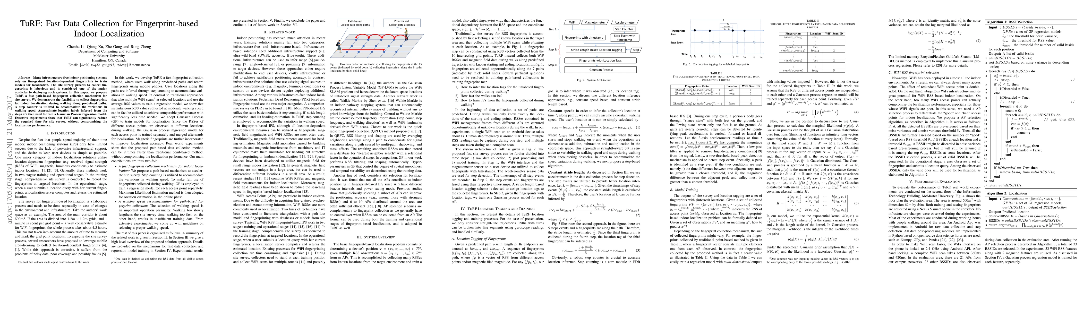 TuRF is a fast path-based mechanism for collecting fingerprints for indoor localization, utilizing a step counter to adjust for walking speed and Gaussian Process regression for training. Experiments show it significantly reduces survey time without sacrificing localization accuracy.