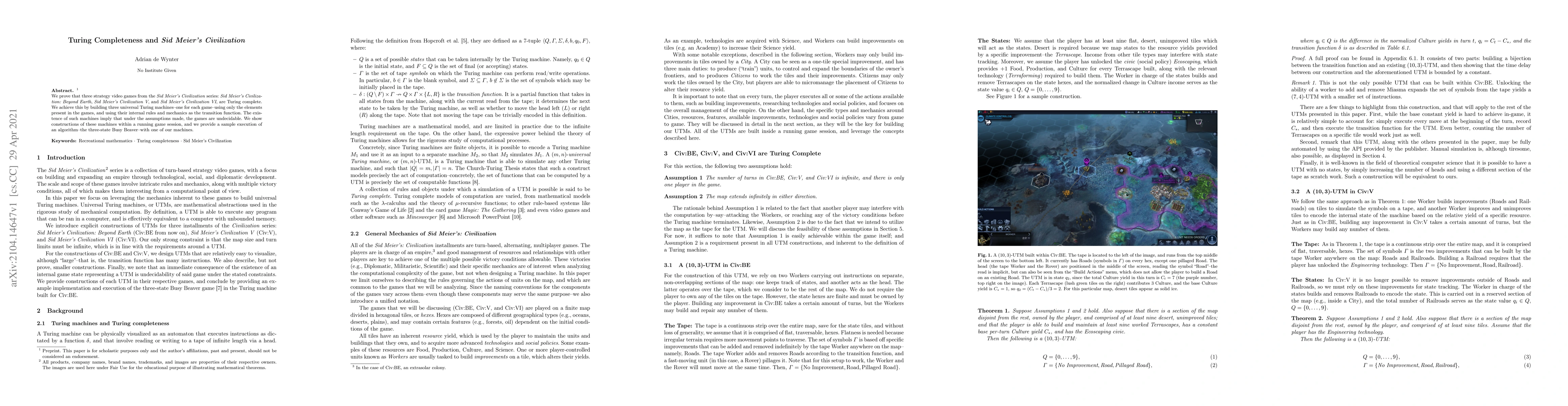 Three strategy games from Sid Meier's Civilization series are proven to be Turing complete, meaning they can simulate the behavior of any algorithm, implying that under certain assumptions, the games are undecidable.