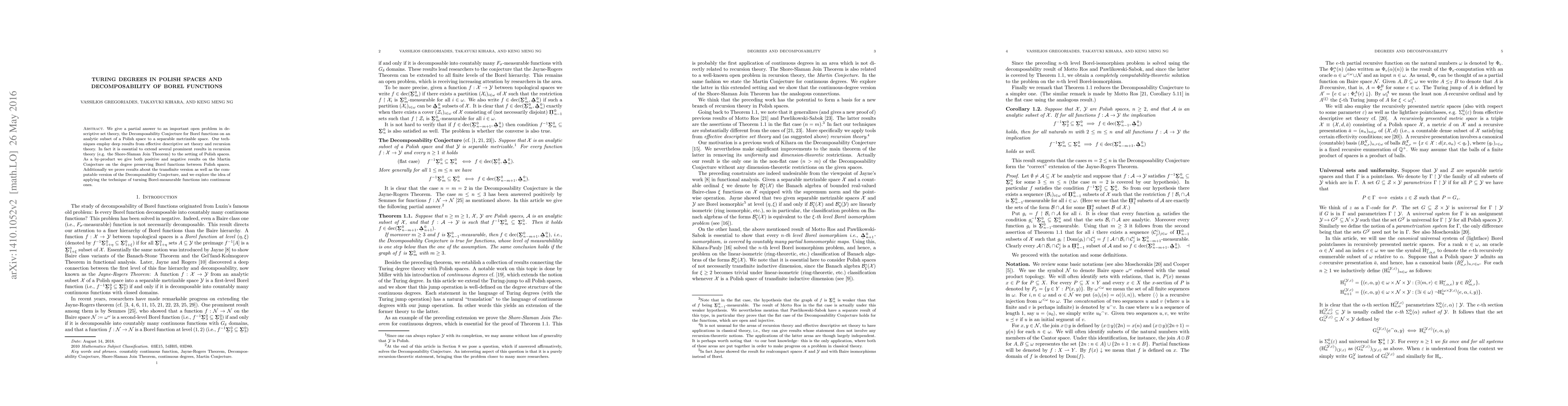 We give a partial answer to an important open problem in descriptive set theory, the Decomposability Conjecture for Borel functions on an analytic subset of a Polish space to a separable metrizable space. Our techniques employ deep results from effective descriptive set theory and recursion theory. In fact it is essential to extend several prominent results in recursion theory (\eg the Shore-Slaman Join Theorem) to the setting of Polish spaces. As a by-product we give both positive and negative results on the Martin Conjecture on the degree preserving Borel functions between Polish spaces. Additionally we prove results about the transfinite version as well as the computable version of the Decomposability Conjecture, and we explore the idea of applying the technique of turning Borel-measurable functions into continuous ones.