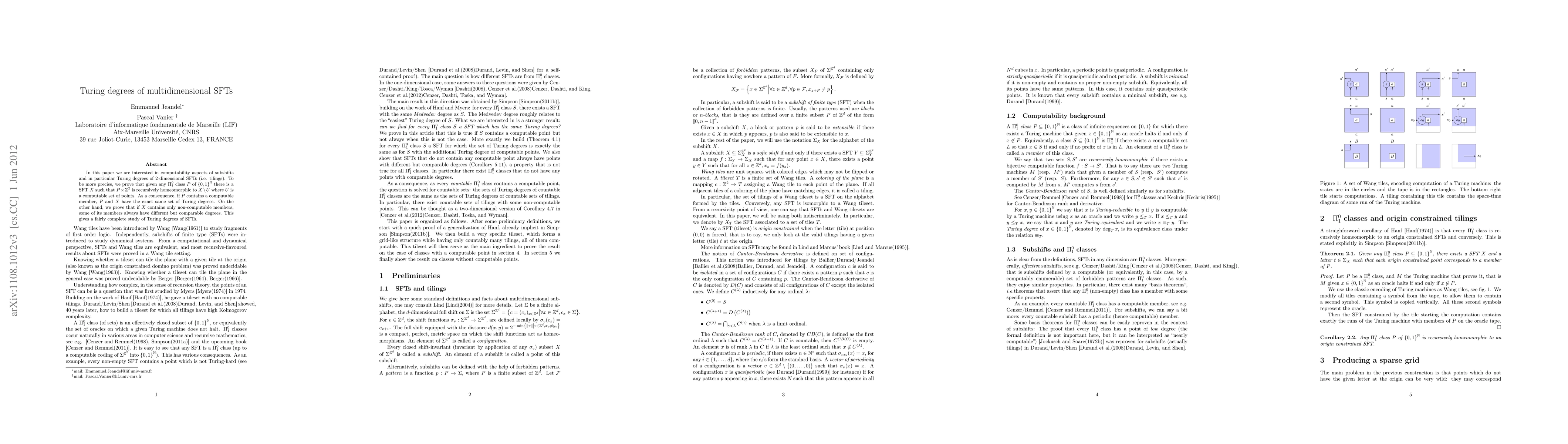 This paper investigates the computability aspects of 2-dimensional subshifts (SFTs), proving that any πzu subset of $\{0,1\}^\NN$ can be recursively homeomorphically embedded into a SFT, preserving Turing degrees if the subset contains a recursive member. It also shows that non-recursive SFTs can have members with distinct but comparable Turing degrees.