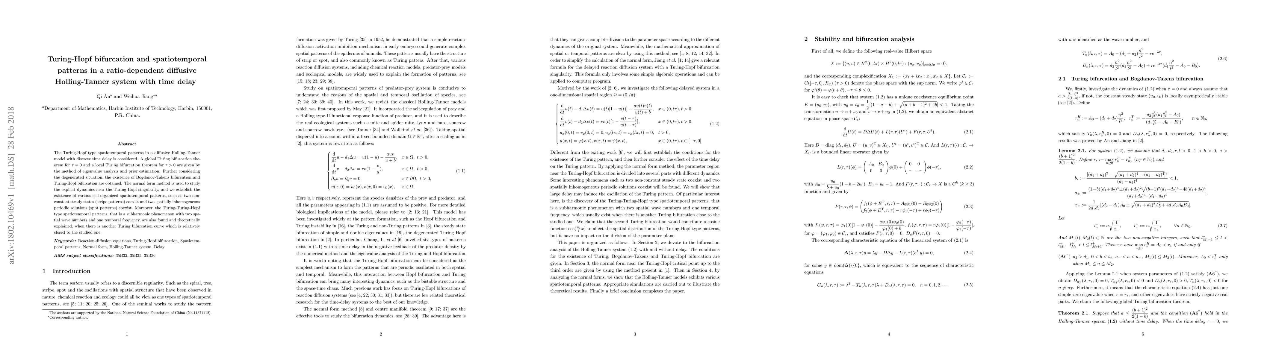 This paper explores spatiotemporal patterns in a diffusive Holling-Tanner model with time delay, proving global and local Turing bifurcation theorems and identifying Bogdanov-Takens and Turing-Hopf bifurcations. It reveals the coexistence of stripe and spot patterns, and discovers Turing-Turing-Hopf type patterns with subharmonic phenomena.