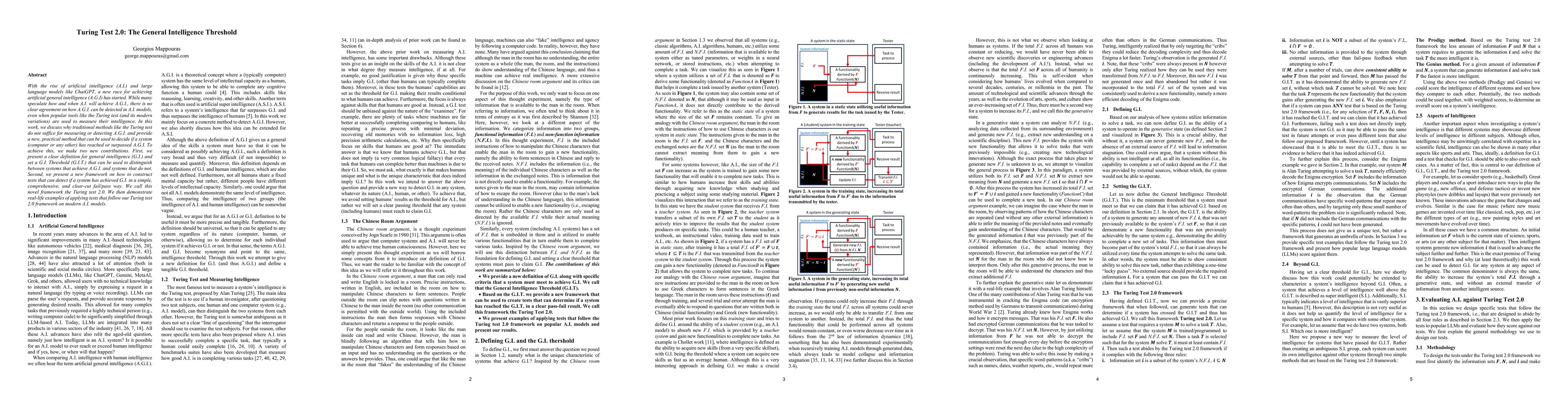 The paper discusses the inadequacy of traditional methods like the Turing test for detecting AGI and proposes a new framework called Turing Tests 2.0, along with a clear definition for general intelligence and a G.I. threshold (G.I.T.)