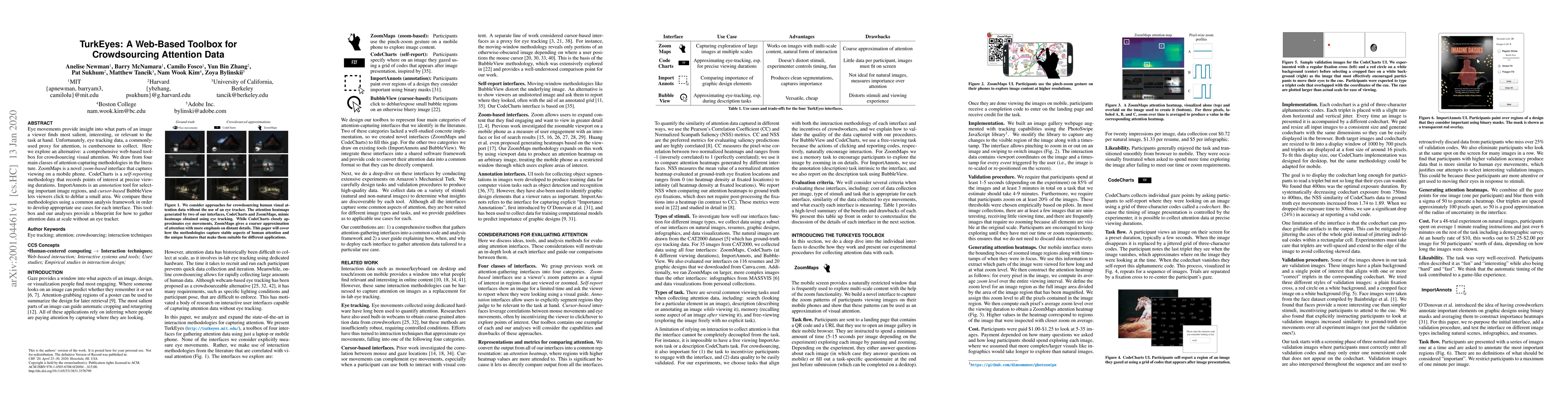 Eye movements provide insight into what parts of an image a viewer finds most salient, interesting, or relevant to the task at hand. Unfortunately, eye tracking data, a commonly-used proxy for attention, is cumbersome to collect. Here we explore an alternative: a comprehensive web-based toolbox for crowdsourcing visual attention. We draw from four main classes of attention-capturing methodologies in the literature. ZoomMaps is a novel "zoom-based" interface that captures viewing on a mobile phone. CodeCharts is a "self-reporting" methodology that records points of interest at precise viewing durations. ImportAnnots is an "annotation" tool for selecting important image regions, and "cursor-based" BubbleView lets viewers click to deblur a small area. We compare these methodologies using a common analysis framework in order to develop appropriate use cases for each interface. This toolbox and our analyses provide a blueprint for how to gather attention data at scale without an eye tracker.