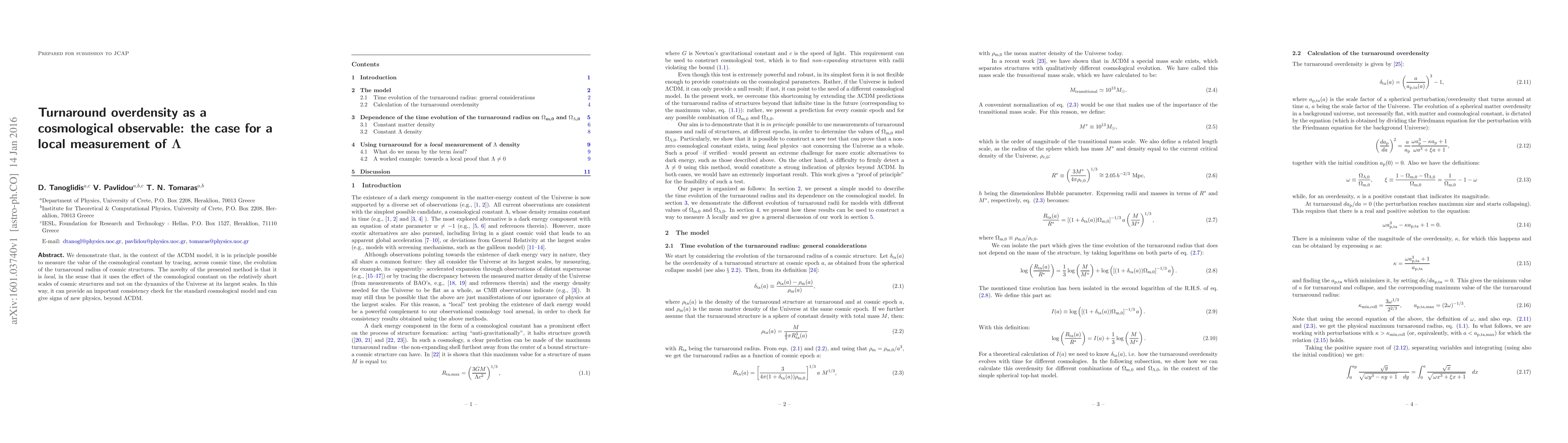 We demonstrate that, in the context of the $\Lambda$CDM model, it is in principle possible to measure the value of the cosmological constant by tracing, across cosmic time, the evolution of the turnaround radius of cosmic structures. The novelty of the presented method is that it is local, in the sense that it uses the effect of the cosmological constant on the relatively short scales of cosmic structures and not on the dynamics of the Universe at its largest scales. In this way, it can provide an important consistency check for the standard cosmological model and can give signs of new physics, beyond $\Lambda$CDM.