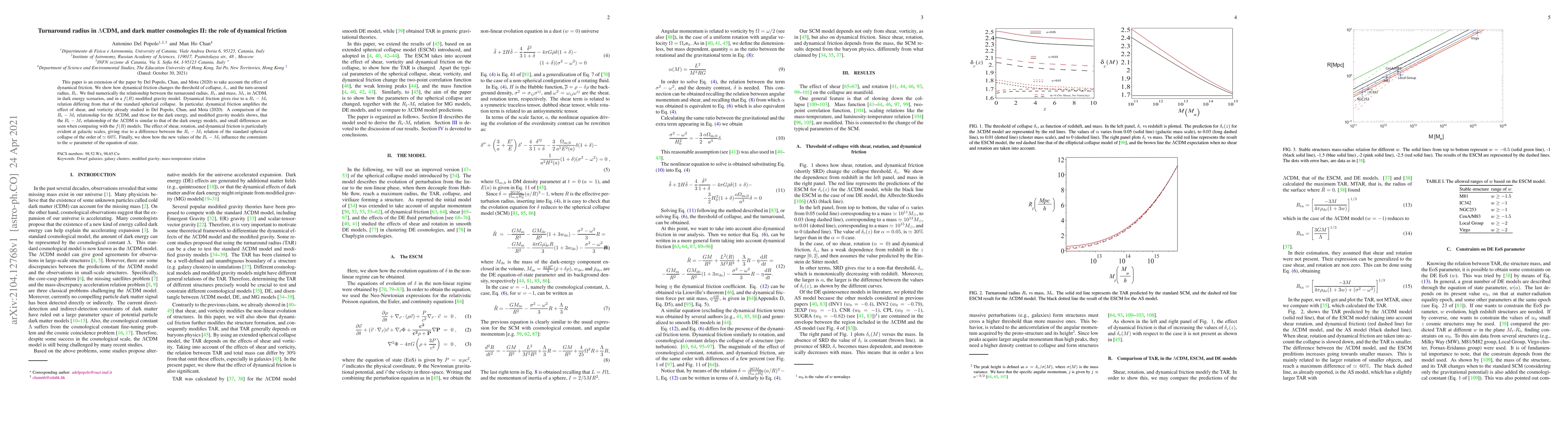 This paper extends previous work to include dynamical friction's impact on the turnaround radius and collapse threshold in $\Lambda$CDM and dark matter cosmologies, revealing a modified $R_{\rm t}-M_{\rm t}$ relationship that differs from standard spherical collapse, especially at galactic scales.