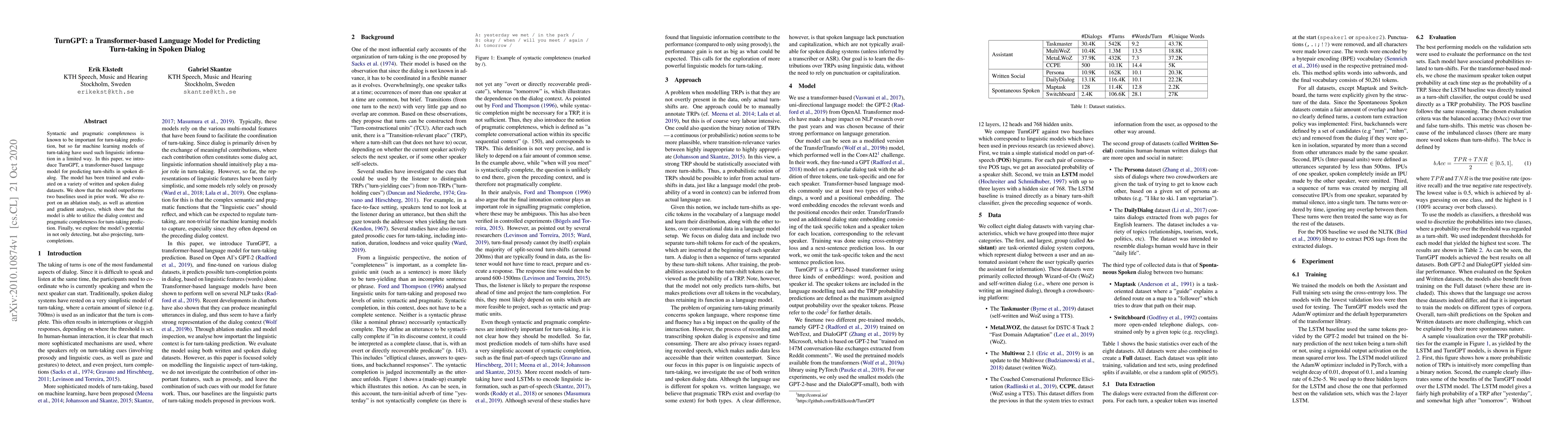 TurnGPT is a transformer-based language model designed to predict turn-taking in spoken dialog, leveraging syntactic and pragmatic completeness. The model outperforms existing baselines and demonstrates its ability to utilize dialog context and pragmatic information for accurate turn-taking prediction.