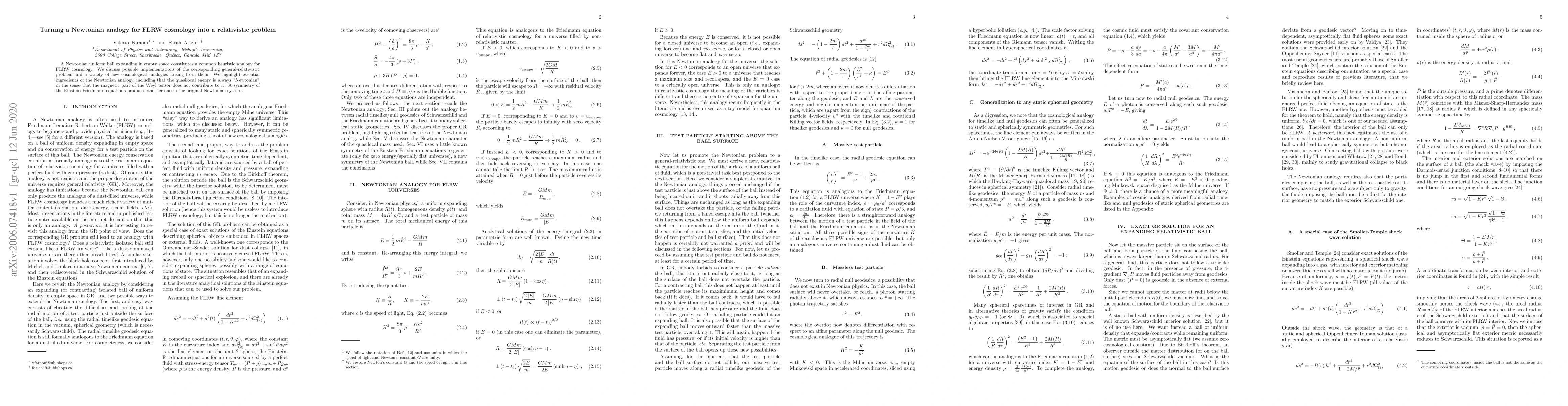 This paper explores the transition from a Newtonian analogy of FLRW cosmology, where a uniform expanding ball represents the universe, to a relativistic framework. It investigates the general-relativistic problem and introduces new cosmological analogies, emphasizing that the quasilocal energy remains 'Newtonian' and highlighting symmetries in the Einstein-Friedmann equations.
