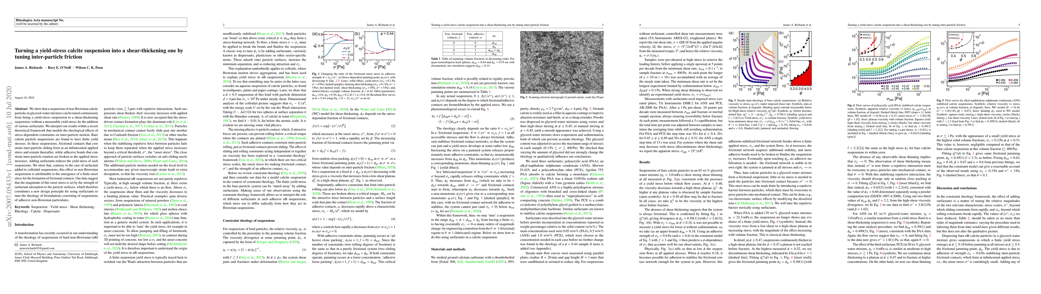 This paper demonstrates how a calcite particle suspension in glycerol-water can be transformed from a yield-stress to a shear-thickening suspension by adjusting inter-particle friction with surfactants. The study reveals that surfactants reduce the yield stress by inducing a finite onset stress for frictional contact formation, providing a new design principle for rheology tuning in non-Brownian suspensions.