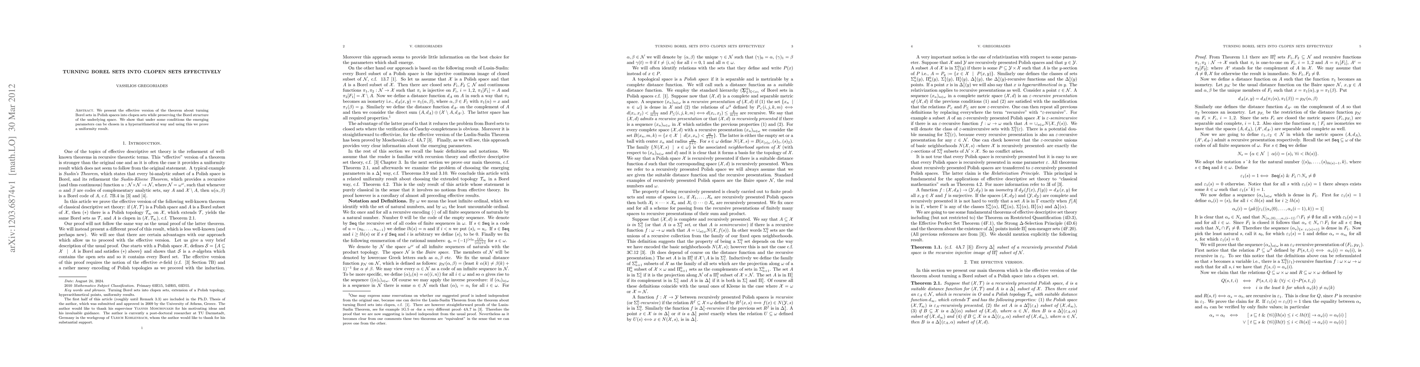 Summary: This paper presents an effective method for transforming Borel sets in Polish spaces into clopen sets while preserving the Borel structure, demonstrating that under certain conditions, the parameters can be chosen hyperarithmetically, leading to a uniformity result.