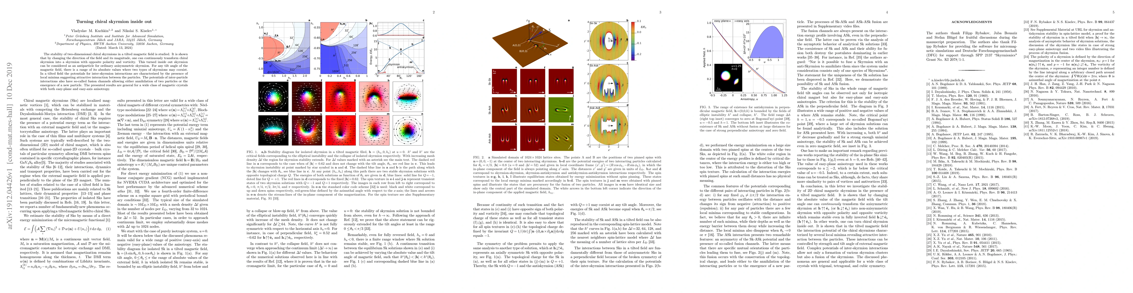 Researchers show that chiral skyrmions can transform into their opposite polarity, creating a 'turned inside out' version, and find conditions for coexistence of two types of skyrmions in tilted magnetic fields.
