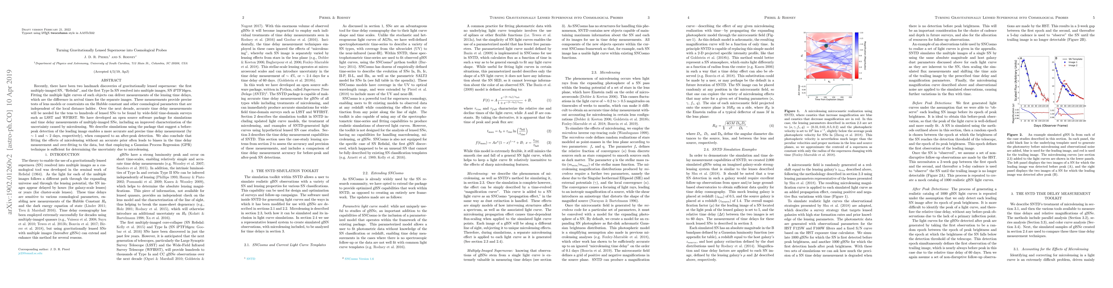 This paper discusses the potential of gravitationally lensed supernovae, like Refsdal and SN iPTF16geu, as cosmological probes by measuring lensing time delays. The authors developed an open-source software package to simulate and measure these delays, emphasizing the importance of detecting leading images before peak brightness for more precise measurements. They also highlight the necessity of using Gaussian Process Regression to accurately account for microlensing uncertainties.