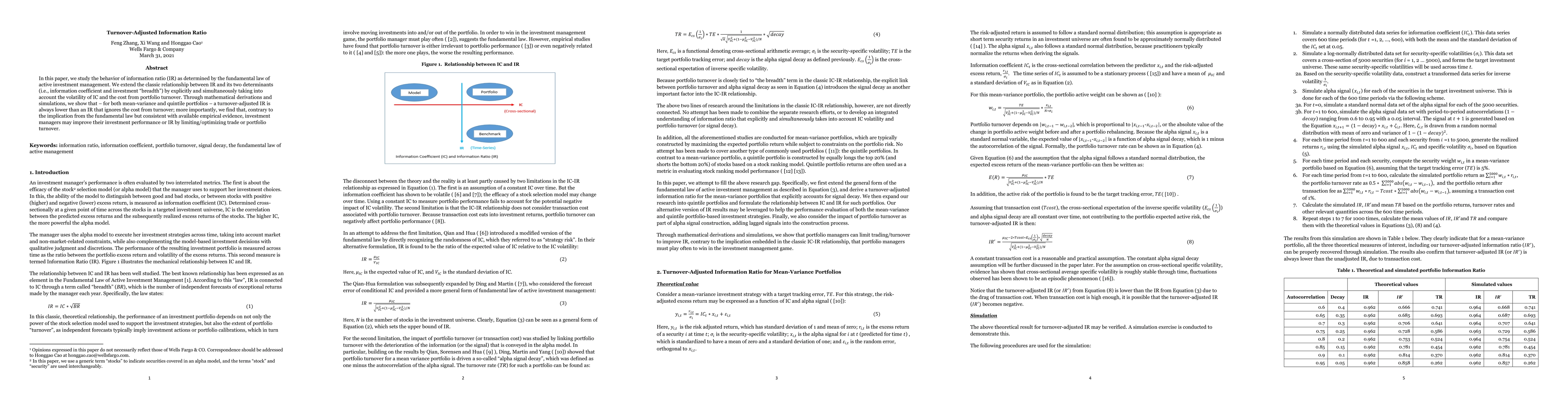 In this paper, we study the behavior of information ratio (IR) as determined by the fundamental law of active investment management. We extend the classic relationship between IR and its two determinants (i.e., information coefficient and investment "breadth") by explicitly and simultaneously taking into account the volatility of IC and the cost from portfolio turnover. Through mathematical derivations and simulations, we show that - for both mean-variance and quintile portfolios - a turnover-adjusted IR is always lower than an IR that ignores the cost from turnover; more importantly, we find that, contrary to the implication from the fundamental low but consistent with available empirical evidence, investment managers may improve their investment performance or IR by limiting/optimizing trade or portfolio turnover.