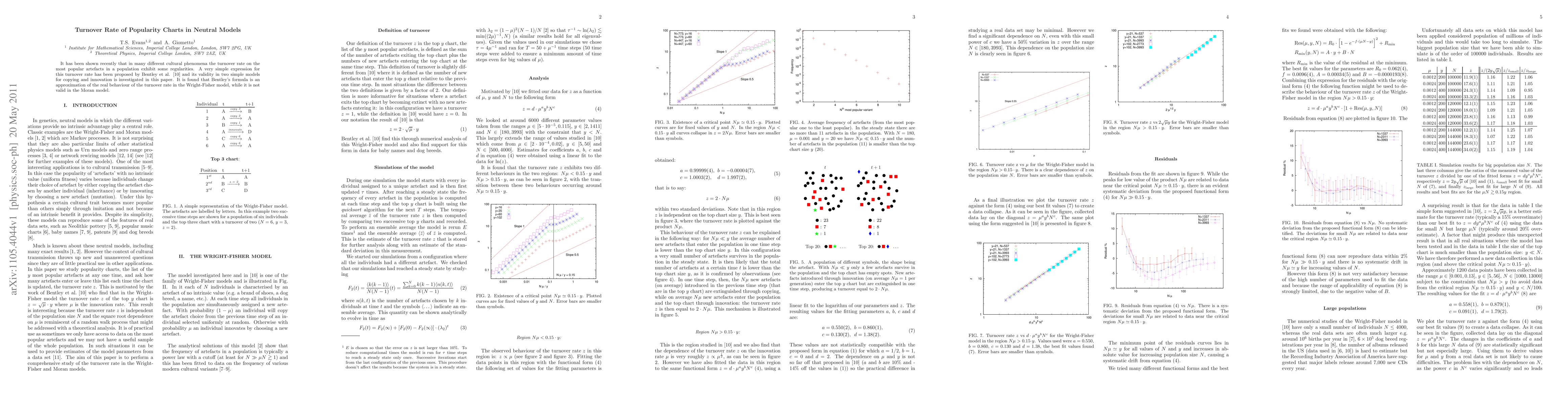 It has been shown recently that in many different cultural phenomena the turnover rate on the most popular artefacts in a population exhibit some regularities. A very simple expression for this turnover rate has been proposed by Bentley et al. and its validity in two simple models for copying and innovation is investigated in this paper. It is found that Bentley's formula is an approximation of the real behaviour of the turnover rate in the Wright-Fisher model, while it is not valid in the Moran model.
