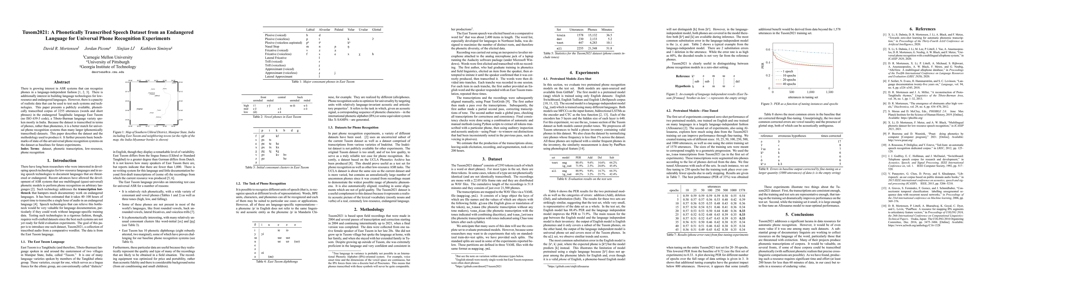 This paper introduces Tusom2021, a phonetically transcribed speech dataset in the endangered East Tusom language, aimed at universal phone recognition. It provides a baseline for future experiments with state-of-the-art systems on low-resource languages.