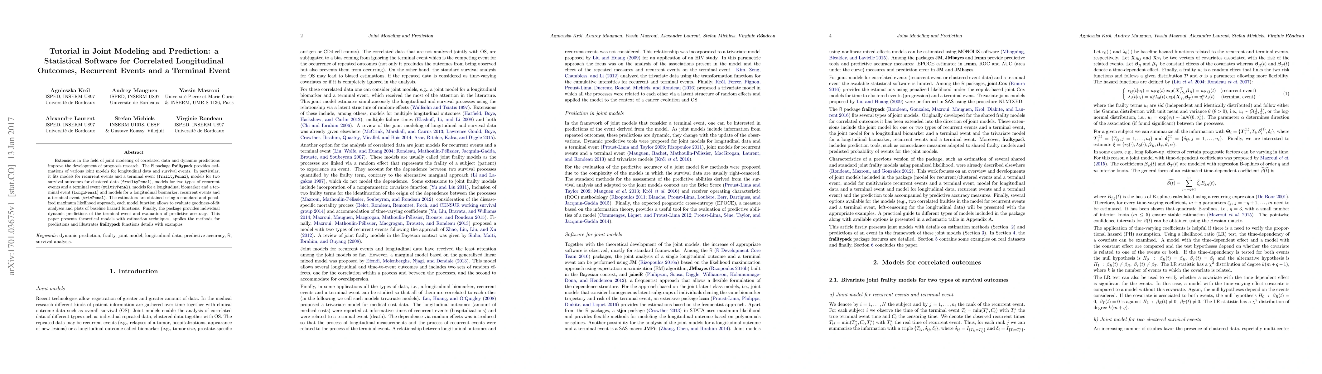 This paper introduces the R package frailtypack for joint modeling of correlated longitudinal outcomes, recurrent events, and terminal events, offering various model functions and estimation techniques. It demonstrates the package's capabilities through theoretical models, goodness-of-fit analyses, and dynamic predictions.
